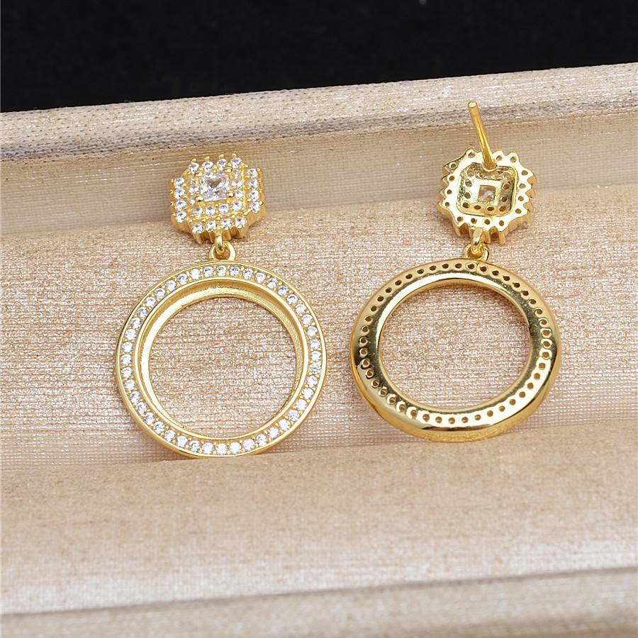 ต่างหูมุกทรงกลมเงินแท้ WENCHI S925 ขนาด 13.7 มม. หรูหรา พร้อมฐานเปล่าสำหรับ DIY อุปกรณ์ตกแต่งเครื่องประดับ