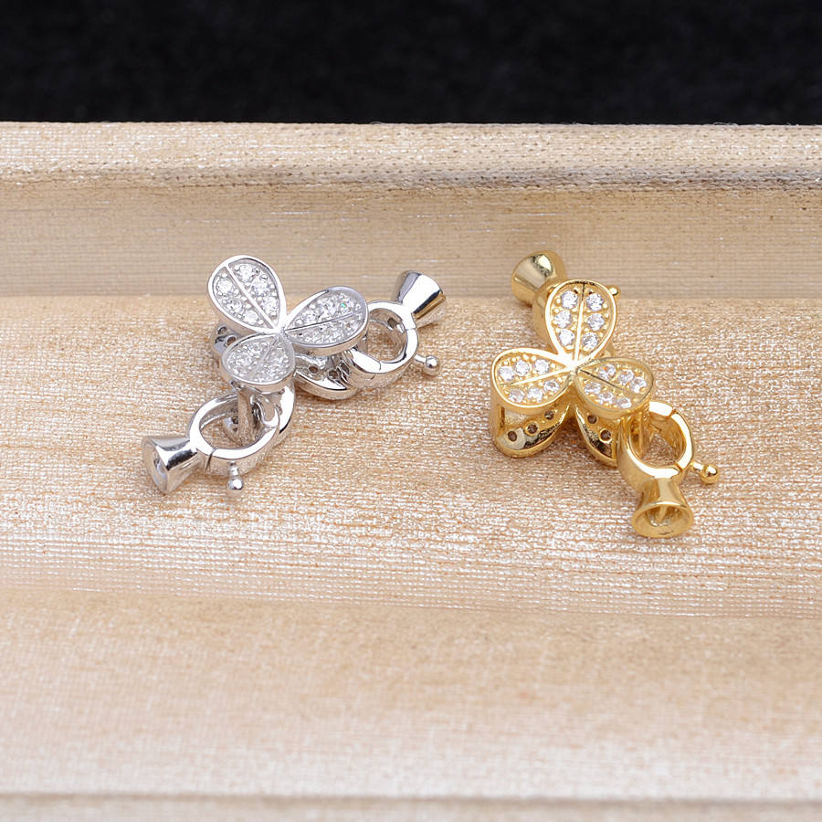 สร้อยคอเงินแท้ S925 ประดับมุก & ตัวล็อคสร้อยข้อมือแบบสองด้าน 5635 อุปกรณ์ทำเครื่องประดับ DIY & ชิ้นส่วนประกอบ อะไหล่ตกแต่งหมวกใบโคลเวอร์นำโชค