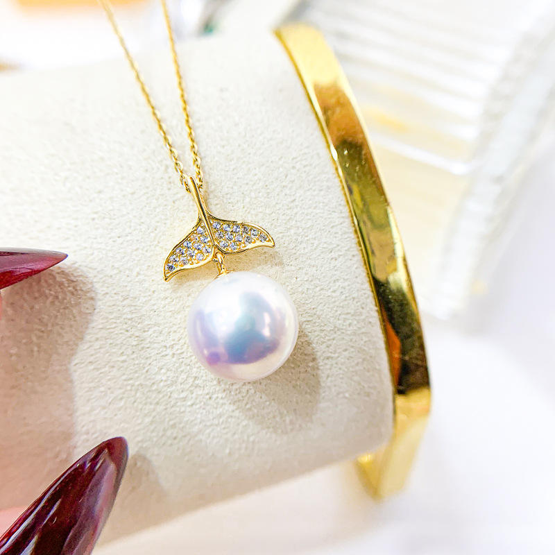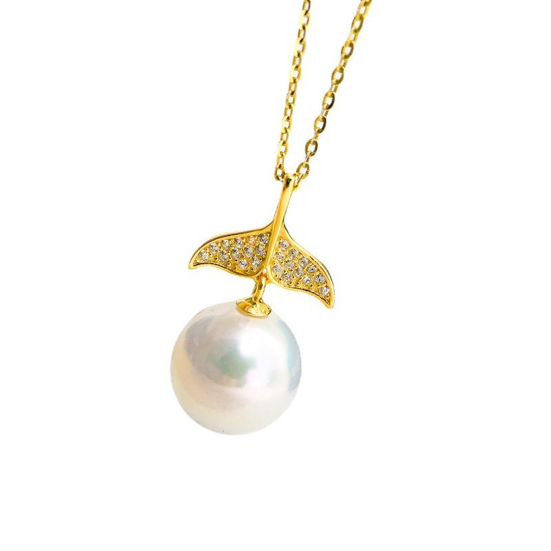 WENCHI S925 จี้เงิน DIY อุปกรณ์เสริมไข่มุกสร้อยคอรูปผีเสื้อเปล่า 9-12 มม. ลูกปัดสีขาวทองโซ่รุ่น 10384 ผลิต