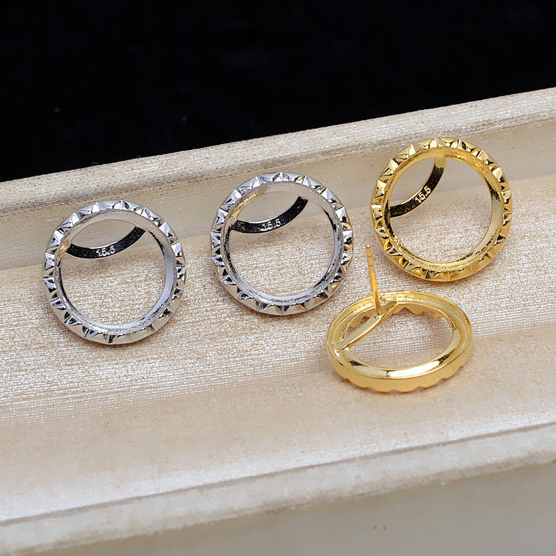 ชุดจี้เงินแท้ S925 และต่างหูแบบห่วง พร้อมฐานรองไข่มุกหินอ่อนแบน 15 มม. สำหรับทำเครื่องประดับ DIY - JG5303