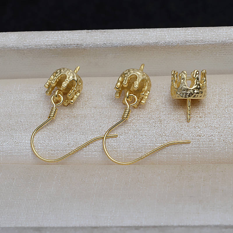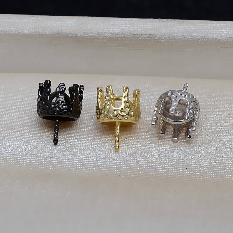 ชุดต่างหูจี้เงินแท้ S925 รูปมงกุฎบาโรกสามมิติ พร้อมฐานเปล่าสำหรับไข่มุกทรง 9-14 มม. อุปกรณ์ทำเครื่องประดับ DIY