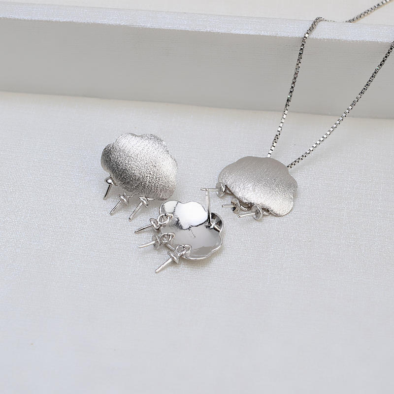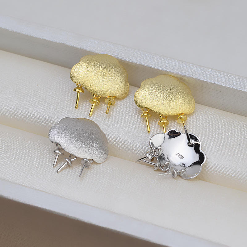 จี้เงินแท้ S925 สำหรับผู้หญิง รูปทรงเมฆ ต่างหูแบบติดหู ชุดอุปกรณ์ DIY ตกแต่งด้วยไข่มุก พร้อมอุปกรณ์ทำเครื่องประดับ