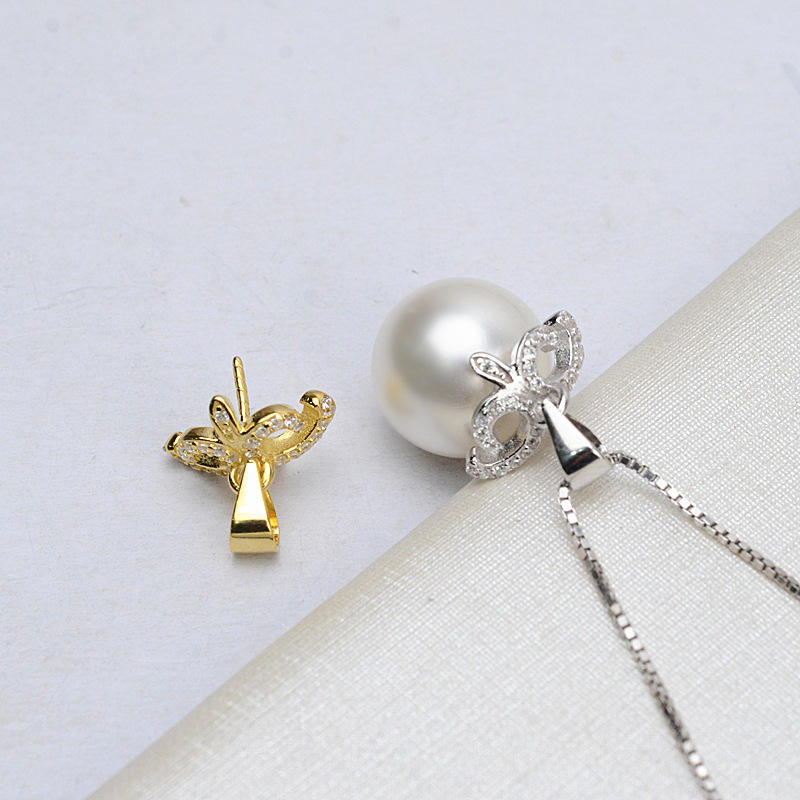 จี้เงินแท้ S925 ลายดอกไม้ ประดับมุก 13-15 เม็ด ขนาด 3 มม. สำหรับทำเครื่องประดับ DIY พร้อมถาดดอกไม้เปล่าสำหรับแขวน