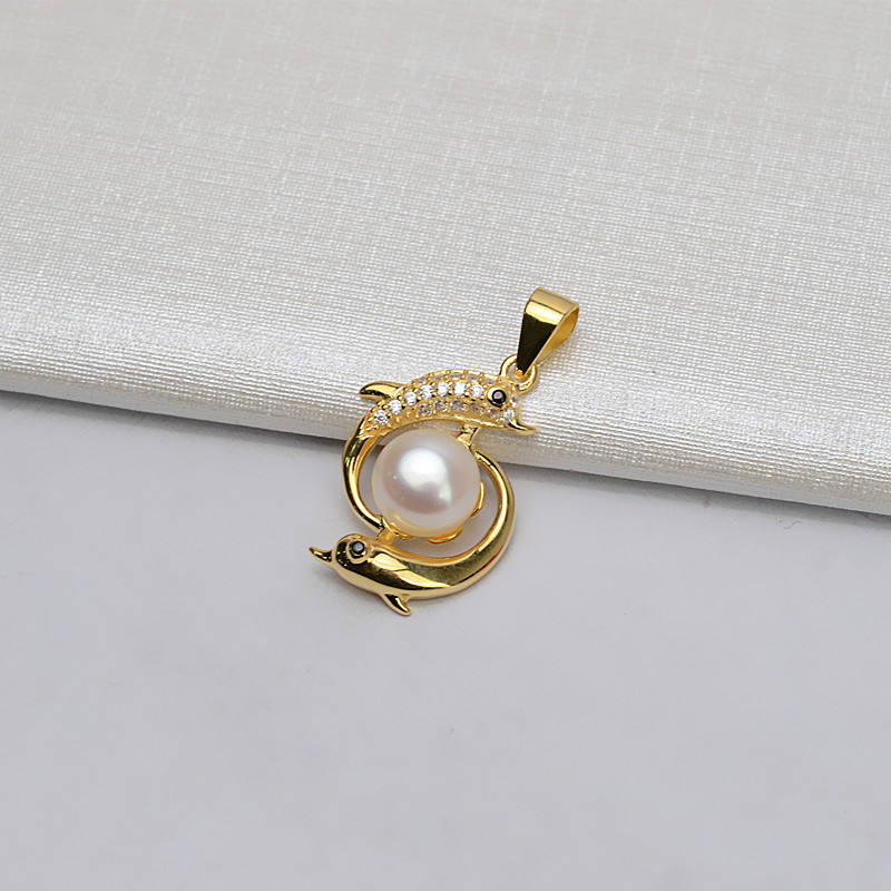 จี้เงินแท้ S925 ดีไซน์ปลาโลมาคู่ สำหรับผู้หญิง ใส่ไข่มุกขนาด 10-12 มม. เครื่องประดับแฟชั่นส่วนบุคคล จี้เงินสวยหรู