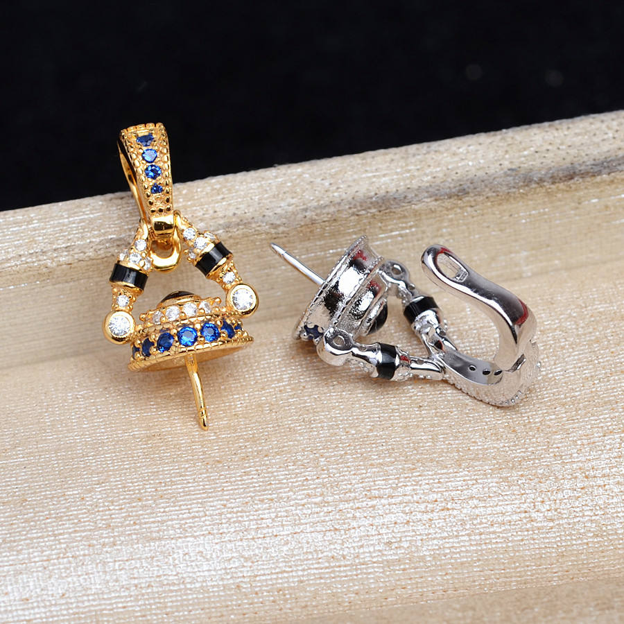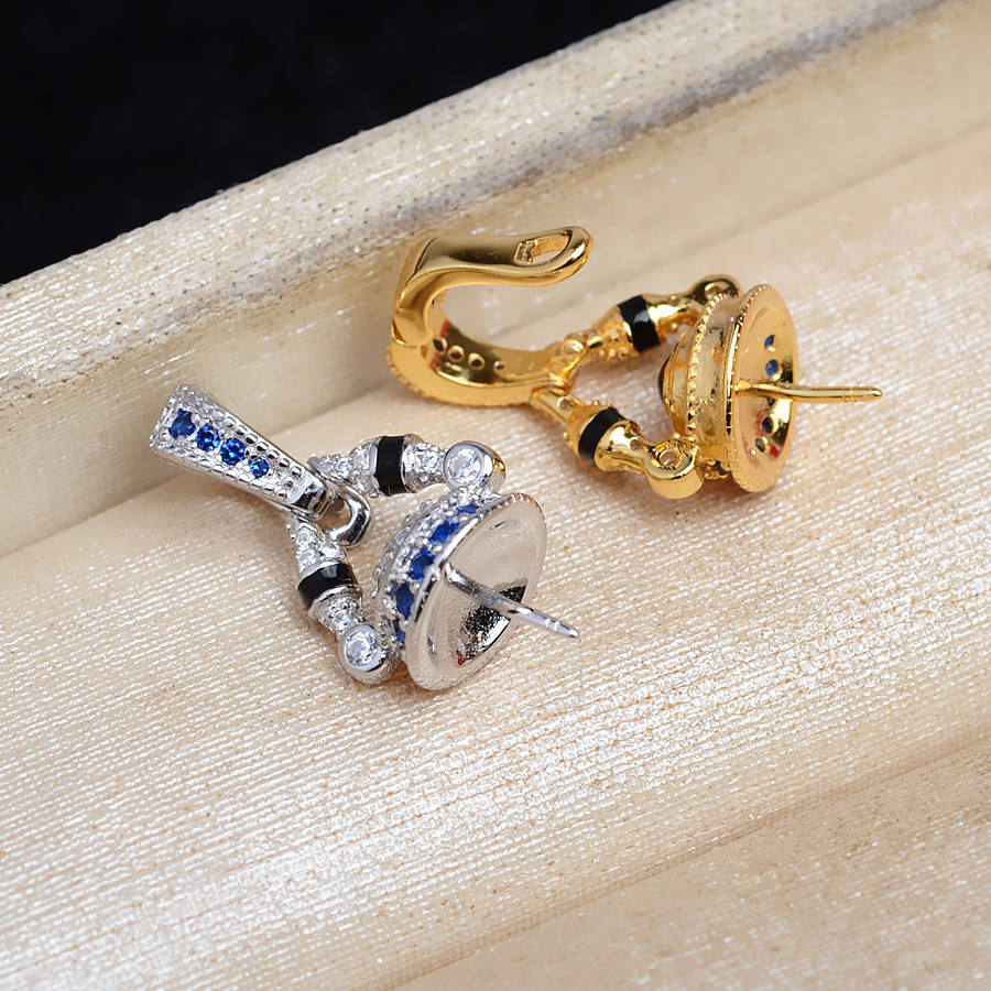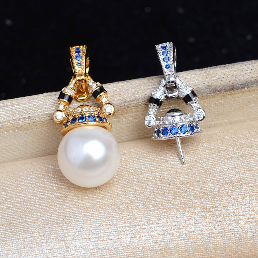 จี้เงินแท้ S925 ฐานกลวง 5823 อุปกรณ์หัวเข็มขัดอเนกประสงค์ DIY สำหรับต่างหูมุก 10-13 มม. อุปกรณ์หัวเข็มขัด DIY สำหรับมุก