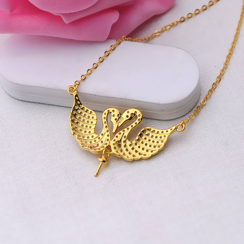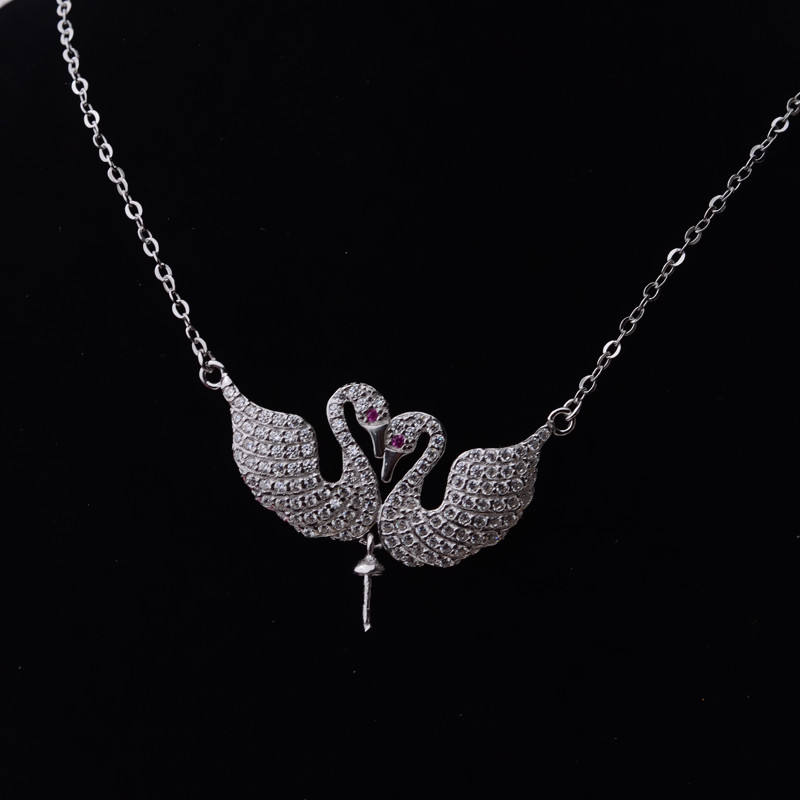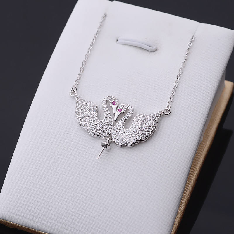 S925 Silver Pendant Necklace for Women DIY Pearl Accessories with Doubles Swan Clavicle Chain Set Fashionable Necklace