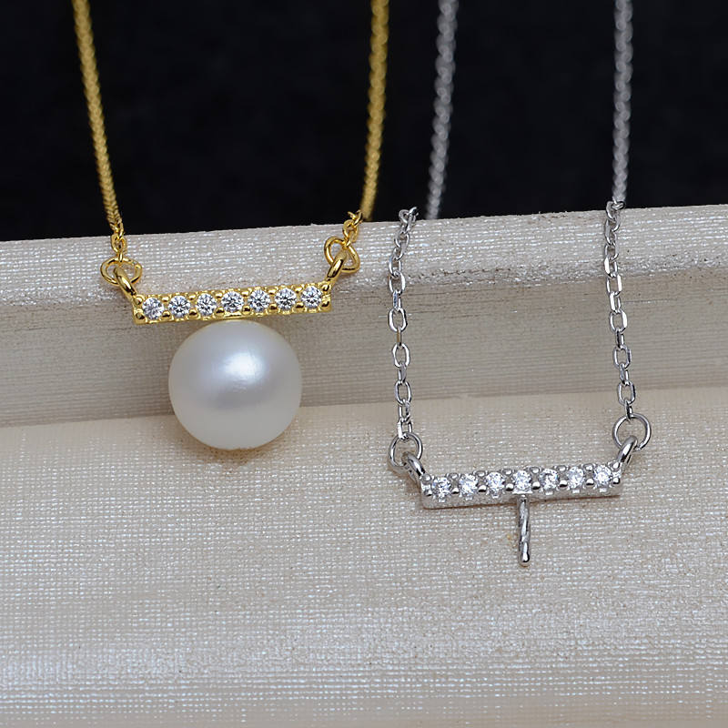 จี้เงินแท้ S925 พร้อมที่ใส่ไข่มุกเปล่าขนาด 8-10 มม. จี้สองด้านพร้อมสร้อยคอ ชุดอุปกรณ์ทำเครื่องประดับ DIY 4169