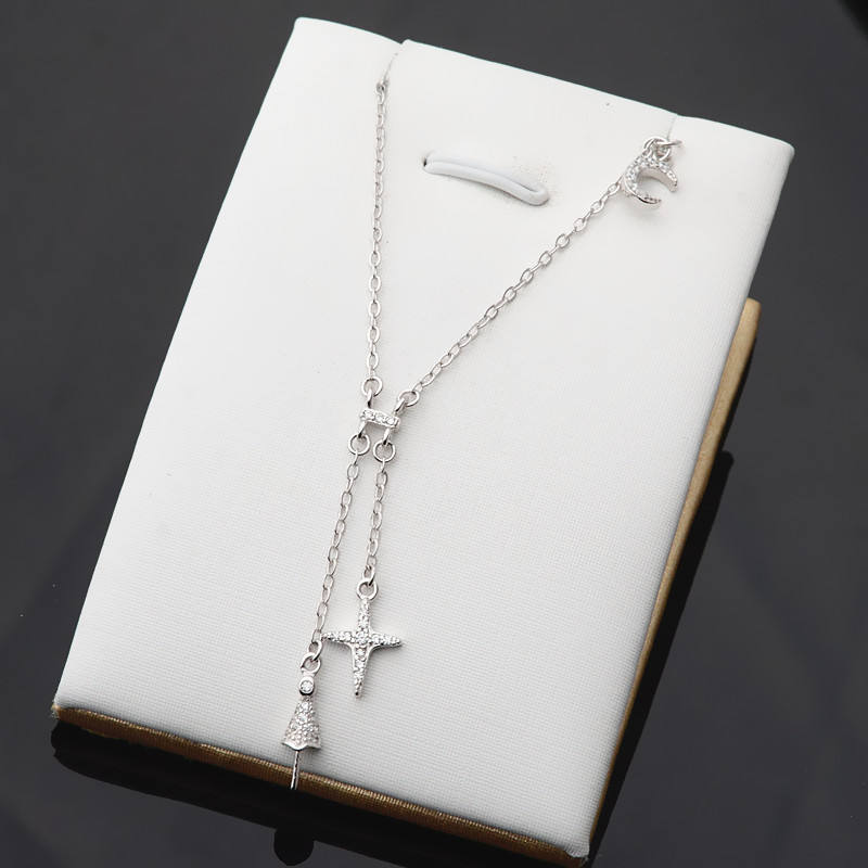 จี้เงินแท้ S925 ดีไซน์ดาวและพระจันทร์ ชุดสร้อยคอผู้หญิง DIY พร้อมสร้อยคอแบบละเอียดประดับมุกและจี้
