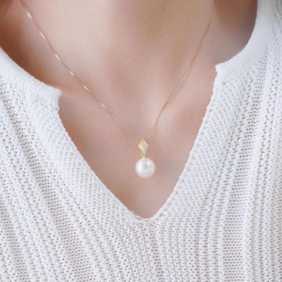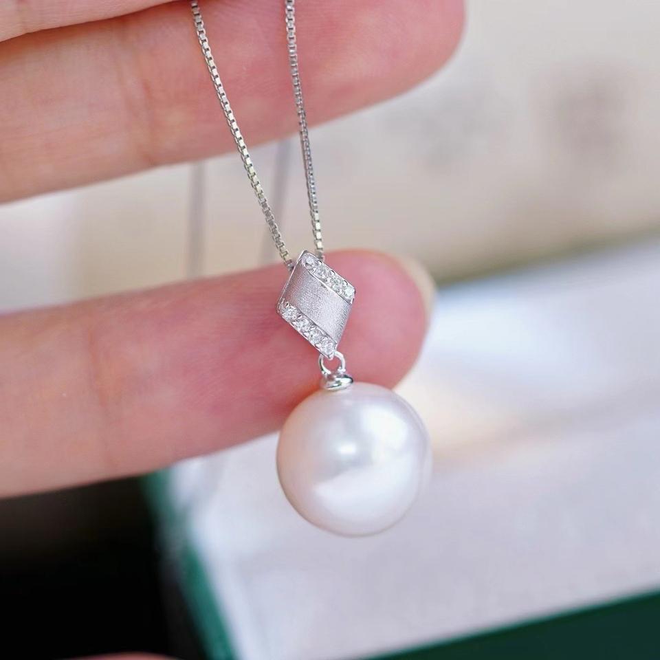 จี้เงินแท้ S925 พร้อมลูกปัดกลมขนาด 10-13 มม. สำหรับทำสร้อยคอแฟชั่น DIY รุ่น 31148 ประดับด้วยไข่มุก
