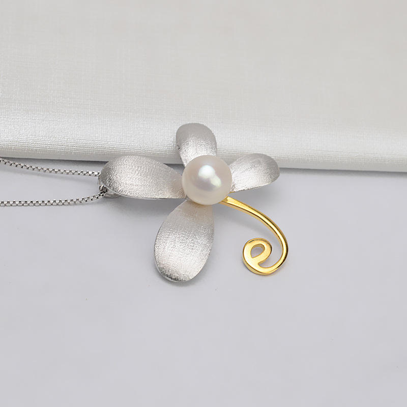 จี้เงินแท้ S925 รูปดอกไม้ขนาดใหญ่ ประดับมุกทอง 9-10 มม. สร้อยคอผู้หญิง อุปกรณ์ DIY ตัวเรือนเปล่า พร้อมโซ่แบบกล่อง 849