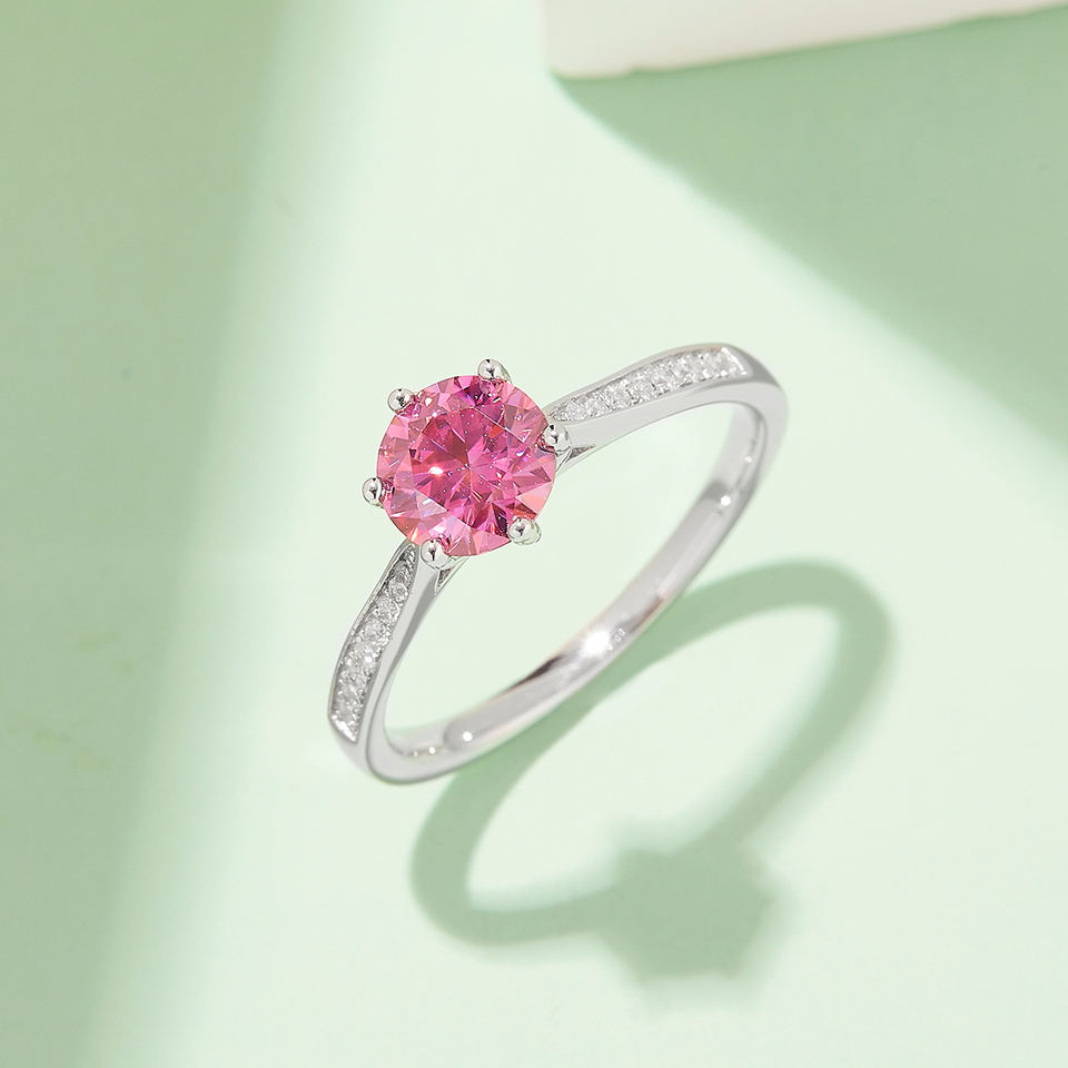 แหวนเพชรมอสซาไนต์สำหรับผู้หญิงเกรด D พร้อมจี้เพชรโมอิส S925ชุบเงินแพลทินัมฝังหกด้านขนาด1กะรัตเกรด D