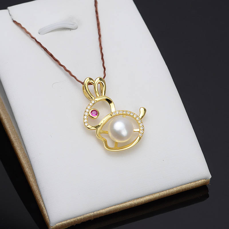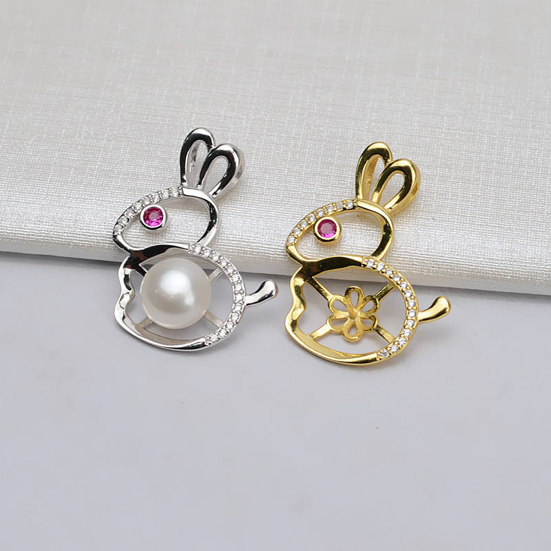 จี้กระต่ายเงินแท้ S925 สำหรับทำเครื่องประดับ DIY จี้รูปสัตว์นักษัตรสำหรับผู้หญิง พร้อมถาดเปล่าสำหรับใส่ไข่มุก 9-11 มม. อุปกรณ์ทำเครื่องประดับกึ่งสำเร็จรูป