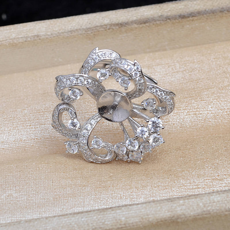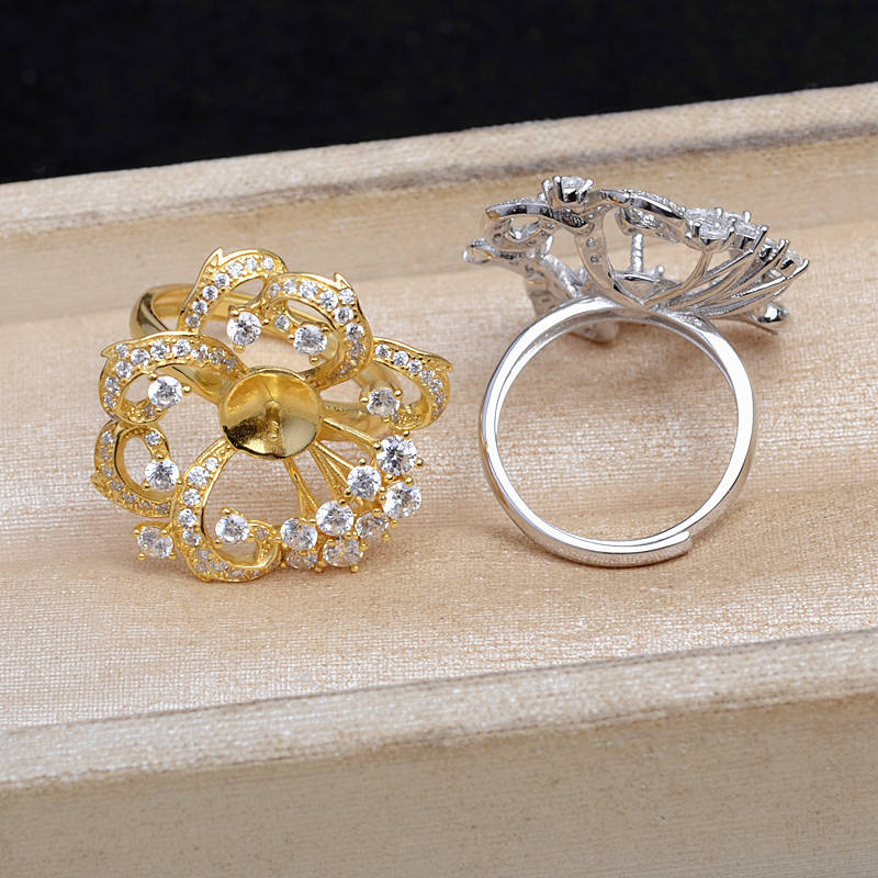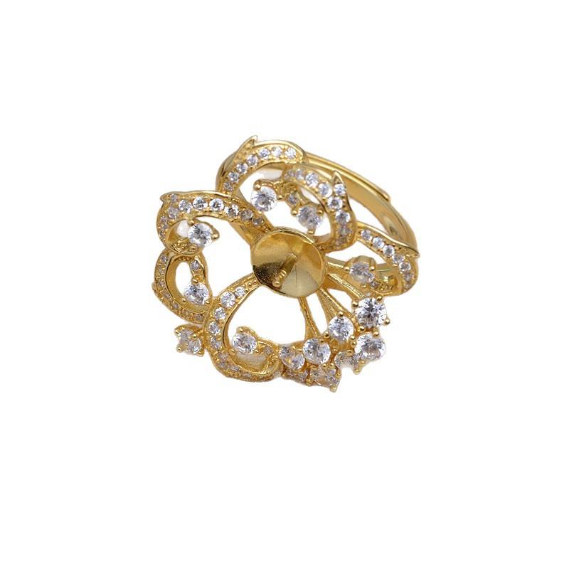 S925 Silver Ring Accessory DIY Retro Luxury Open Ring Holder 11-12mm Gold Plated Semi-Finished Product JG5929