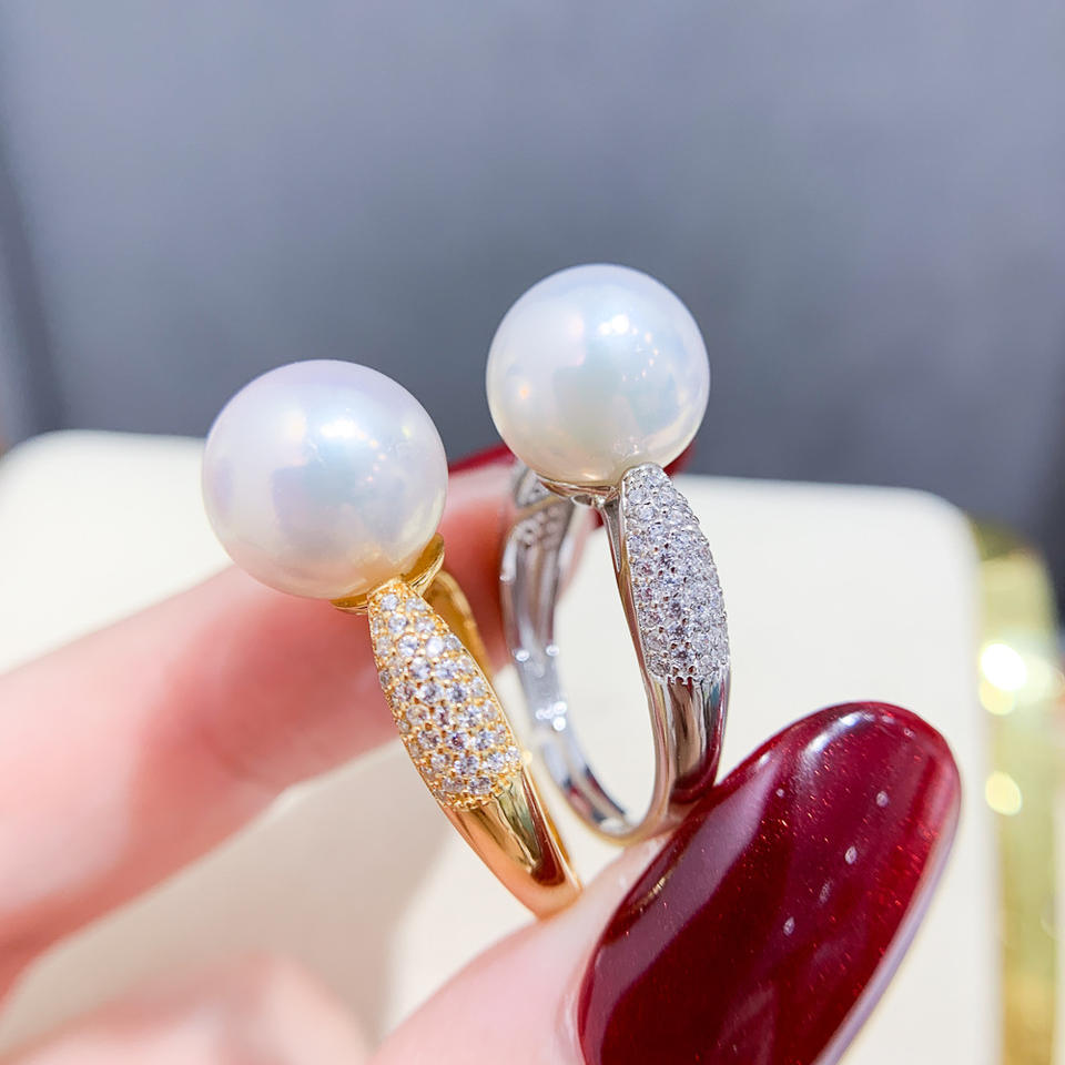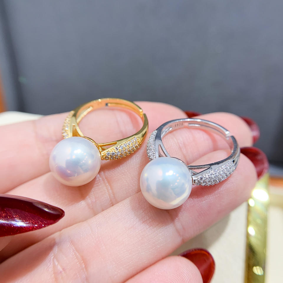 แหวนเงินแท้ S925 ประดับด้วยลูกปัดกลมขนาด 6-8 มม. สำหรับงาน DIY เครื่องประดับมุก รุ่น Light Edition แหวนคริสตัล 10101 อุปกรณ์ตกแต่งเครื่องประดับ