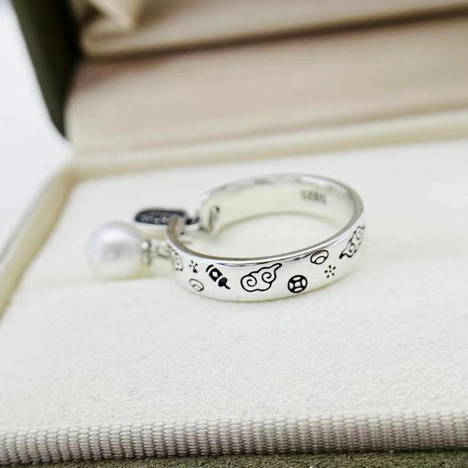 ขาตั้งแหวนเงินแท้ S925 สำหรับงาน DIY ประดับมุก รุ่นเรียบง่าย สำหรับมุกทรงกลมขนาด 6-8 มม. รุ่น 10182