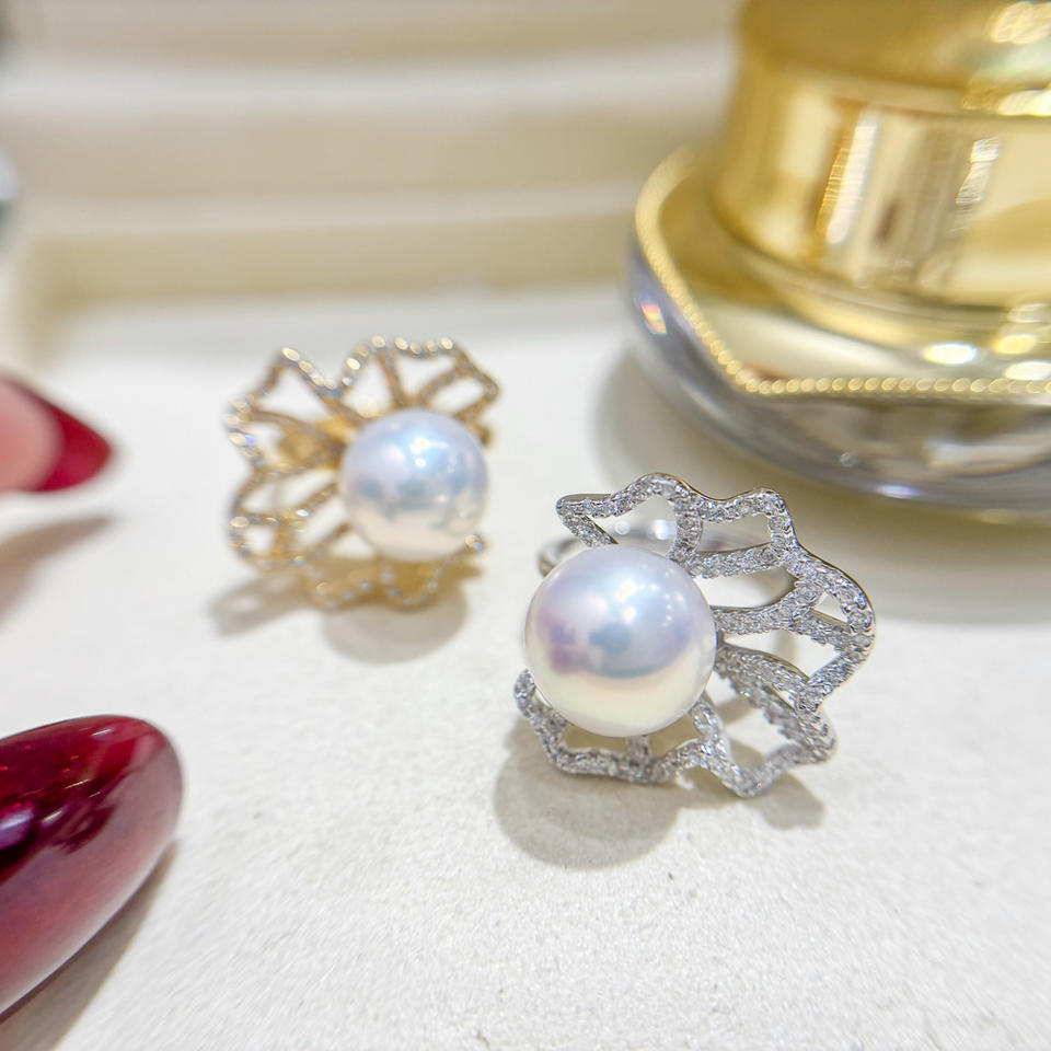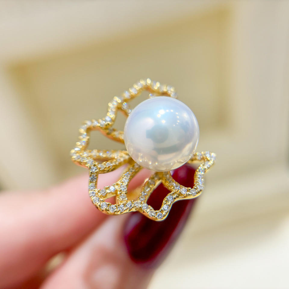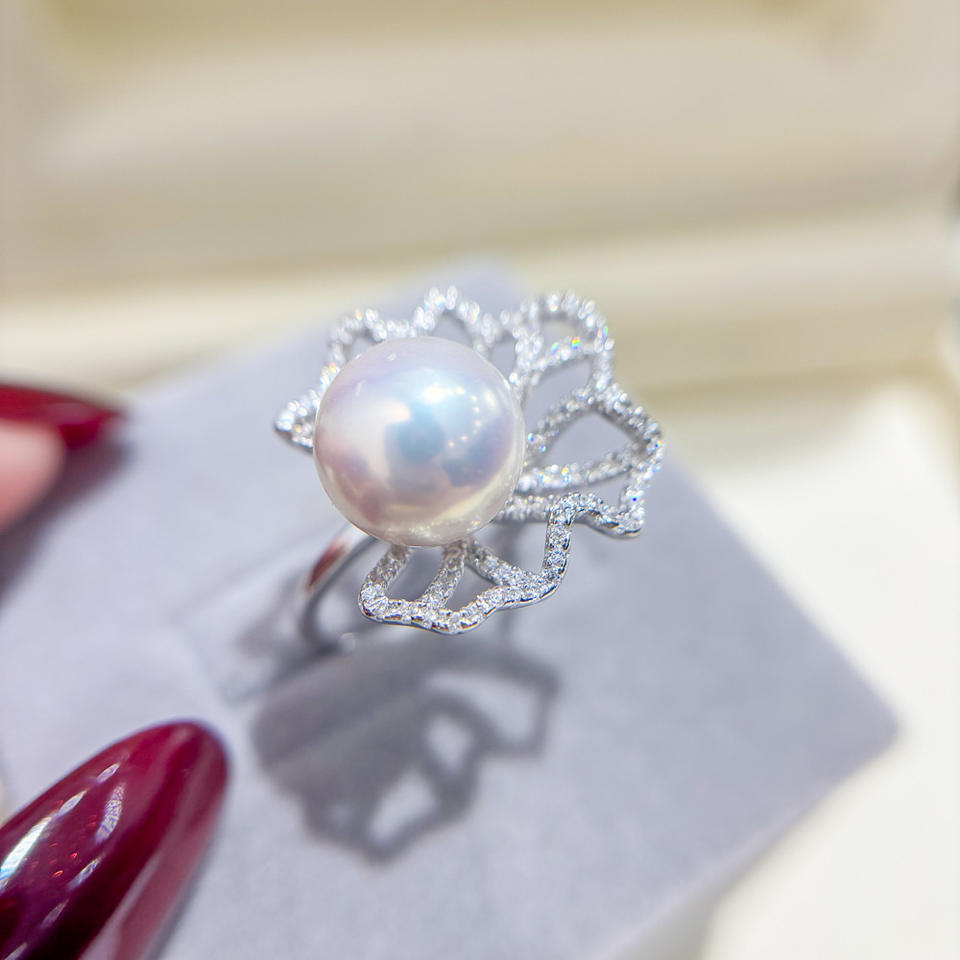 WENCHI S925 แท่นวางแหวนเงินพร้อมลูกปัดกลมขนาด 11-12 มม. DIY เครื่องประดับแฟชั่นมุก 25 มม. แท่นวางเปล่า รุ่น 11952 จีน