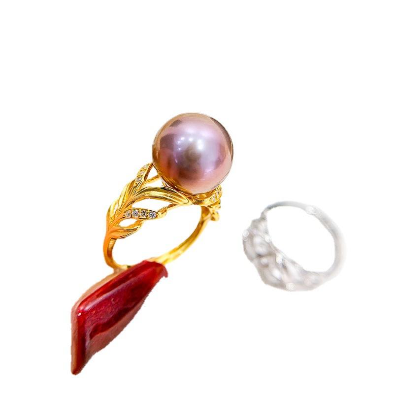 WENCHI S925 ขาตั้งแหวนเงินพร้อมลูกปัดกลมขนาด 11-13 มม. DIY อุปกรณ์เสริมมุกสวยงามมุกหลวมรุ่น 11876 จีน