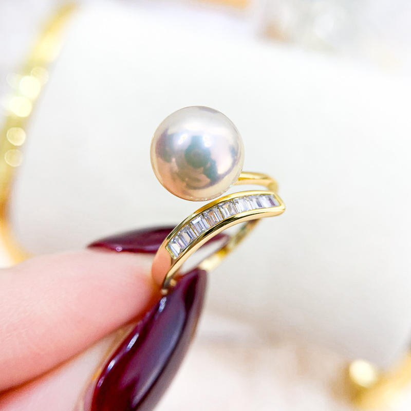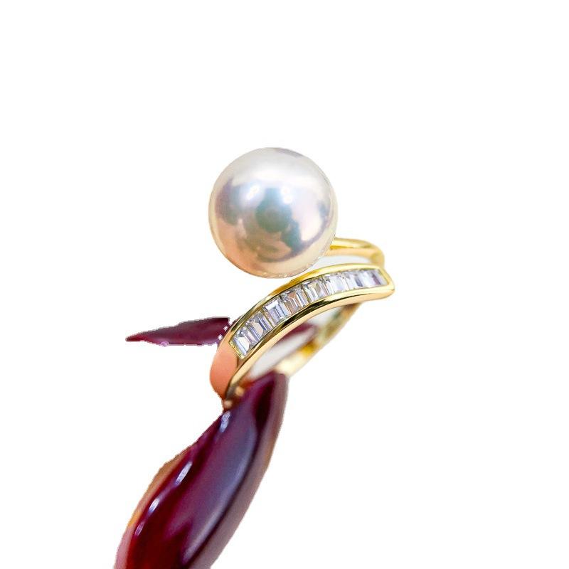 WENCHI S925 ขาตั้งแหวนเงินพร้อมลูกปัดกลม 8-10 มม. DIY อุปกรณ์เสริมไข่มุกแหวนแฟชั่นมีสไตล์รุ่น 11965 จีน