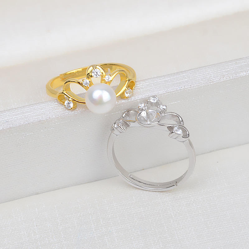 แหวนเงินแท้ S925 สำหรับผู้หญิง สไตล์มงกุฎแบบเปิด แหวนเปล่าสำหรับใส่เครื่องประดับ 207