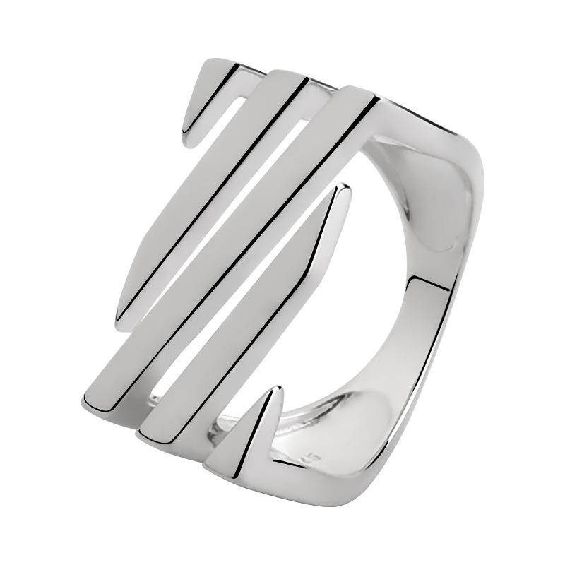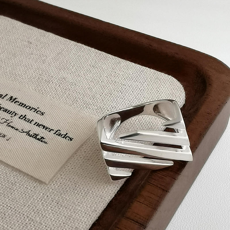 แหวนเงิน S925สำหรับผู้หญิงผ้าทอลายทแยงหลายชั้นประดับเพชรสีเงินสเตอร์ลิงประดับเพชรแบบกลวงแนวยุโรปอเมริกัน