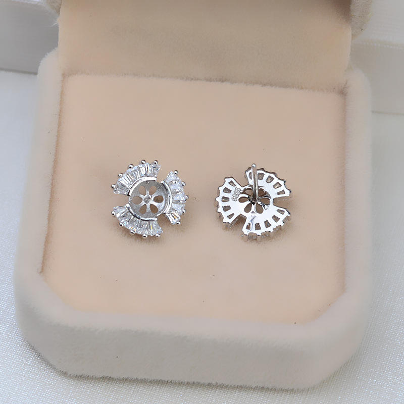ต่างหูเงินแท้ S925 ชุบทองคำขาวและโรสโกลด์ ทรงสี่เหลี่ยม ประดับเพชรซิคอนสองแถว สำหรับทำเครื่องประดับมุก DIY ถาดเปล่าสำหรับฝังอัญมณี รุ่น 1043