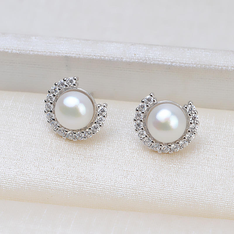 ชุดต่างหูเงินแท้ S925 รูปทรงครึ่งวงกลมแบบตัว C สำหรับผู้หญิง พร้อมอุปกรณ์ตกแต่งมุก DIY และฐานเปล่าสำหรับทำเครื่องประดับ