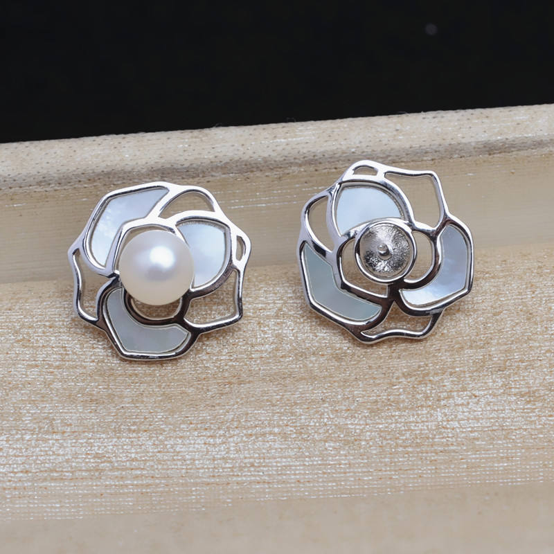ต่างหูเงินแท้ S925 แบบเปลือกหอย ขนาดกะทัดรัด สำหรับไข่มุก 8-9 มม. เครื่องประดับผู้หญิง งานละเอียด อุปกรณ์ DIY กึ่งสำเร็จรูป ถาดเปล่า 1084