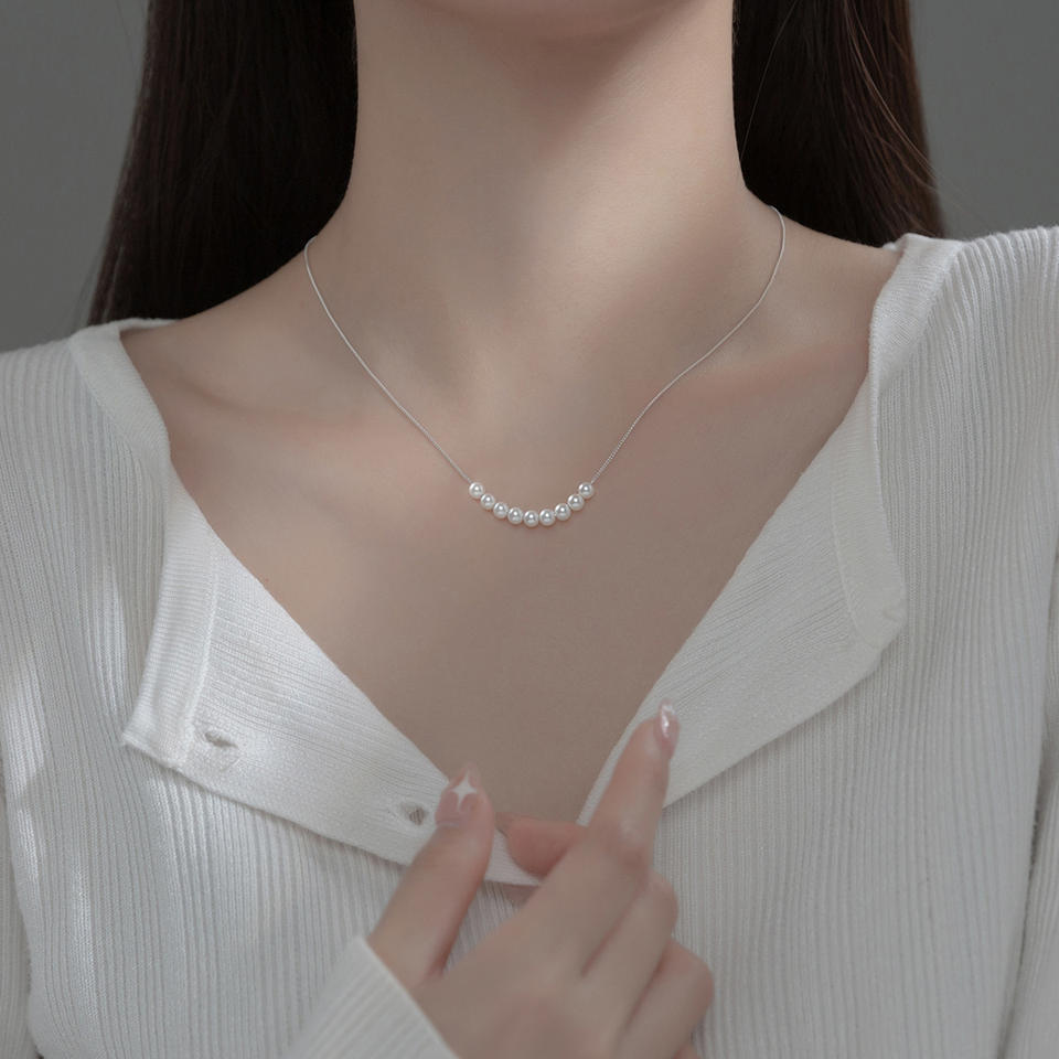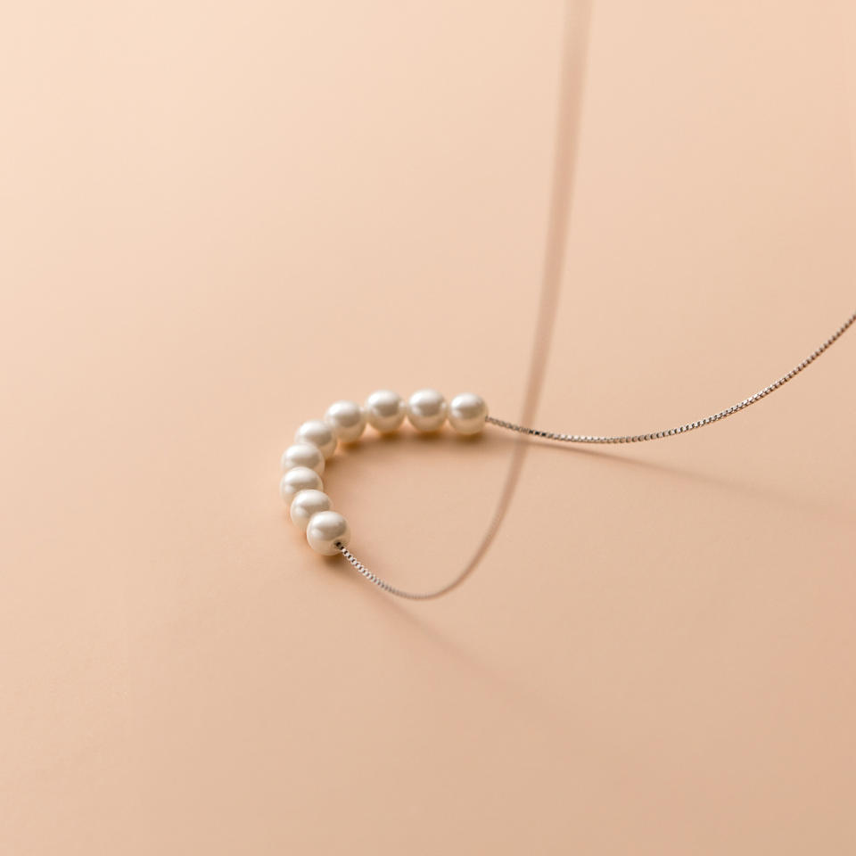 สร้อยคอไข่มุกเทียมเรียบง่าย ดีไซน์สดใส ทำจากเงินแท้ S925 พร้อมสายแบบกล่อง สำหรับผู้หญิง รุ่น D9156