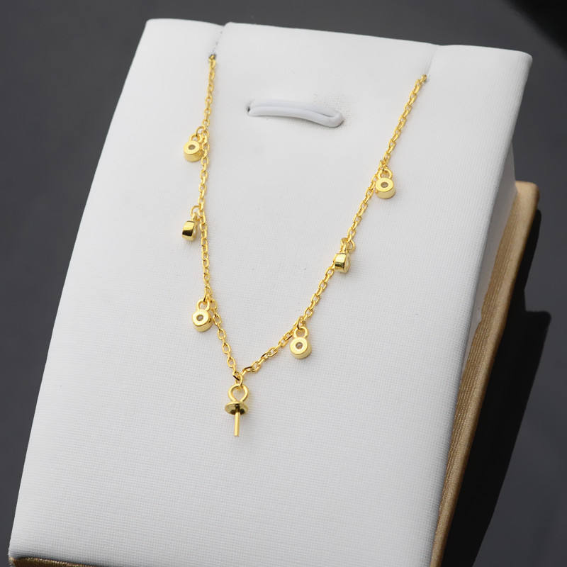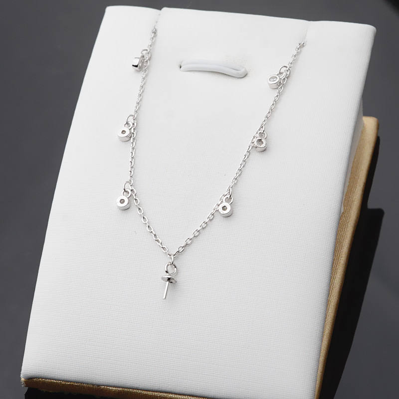 สร้อยคอเงินแท้ S925 แบบเรียบง่ายสำหรับผู้หญิง สร้อยคอประดับมุกแบบกลวง รองรับการ DIY อุปกรณ์ตกแต่งเครื่องประดับ ชิ้นส่วนประกอบเครื่องประดับ