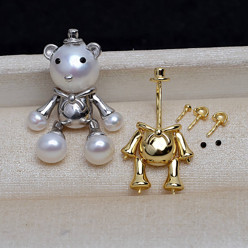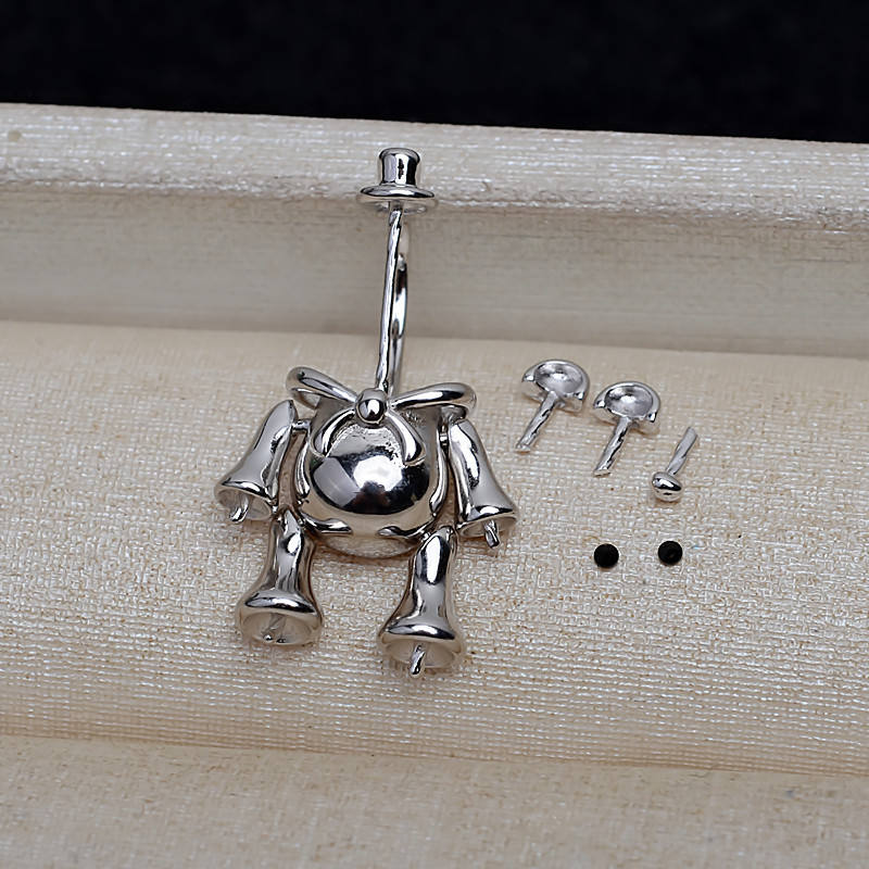 จี้หมีเล็กเงินแท้ S925 สไตล์บาโรก สร้อยคอมุกหลายเม็ด แฟชั่น อุปกรณ์ทำเครื่องประดับ DIY สำหรับผู้หญิง ตัวจี้เปล่า