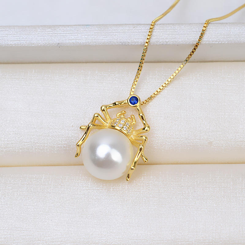 จี้เงินแท้ S925 รูปแมงมุม ประดับด้วยไข่มุกผมทารก 9-12 มม. ทรงบาโรก ฐานกลวง สำหรับทำสร้อยคอผู้หญิง รุ่น 1596