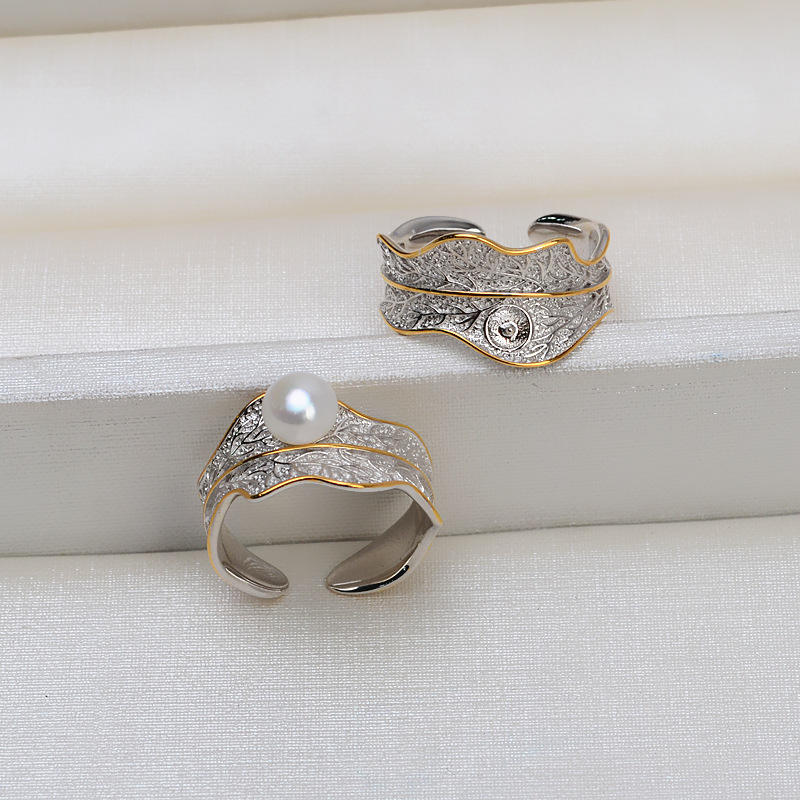 แหวนเงินแท้ S925 สีผสมสำหรับผู้หญิง ประดับมุก 5-6 เม็ด ปากแหวนปรับขนาดได้ สำหรับทำเครื่องประดับ DIY รุ่น Air Tide Holder 1582