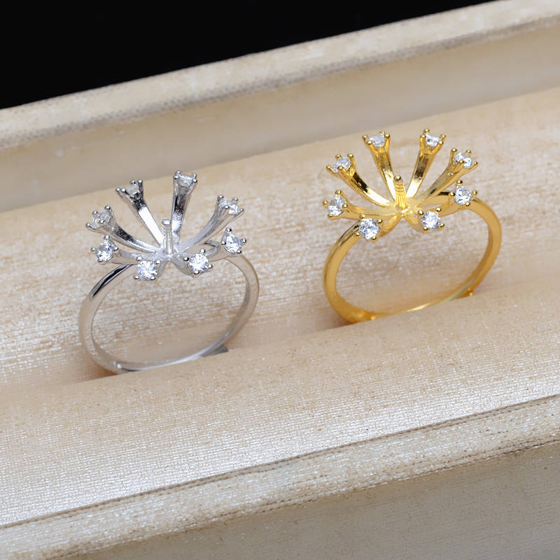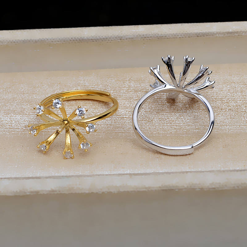 แหวนเงินแท้ S925 ลายดอกไม้บาน ปรับขนาดได้ 11-12 รุ่น JG5195 พร้อมอุปกรณ์ตกแต่งมุก ฐานเปล่าสำหรับทำเครื่องประดับ
