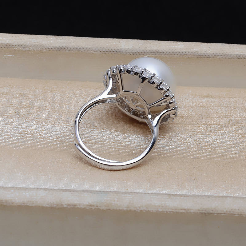 แหวนเงินแท้ S925 ลายดอกไม้บาน ปรับขนาดได้ 13-14 พร้อมไข่มุกและฐานเปล่า JG5129S92 อุปกรณ์ทำเครื่องประดับ