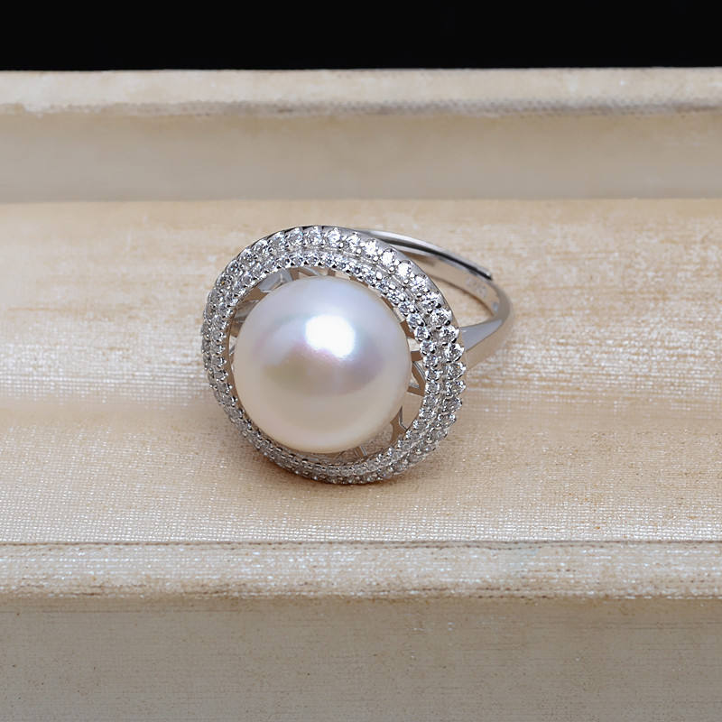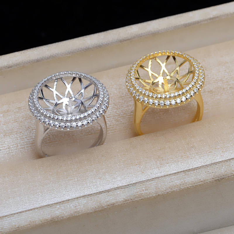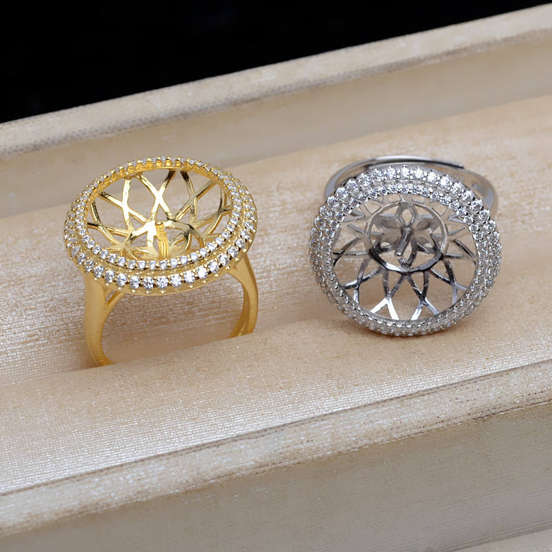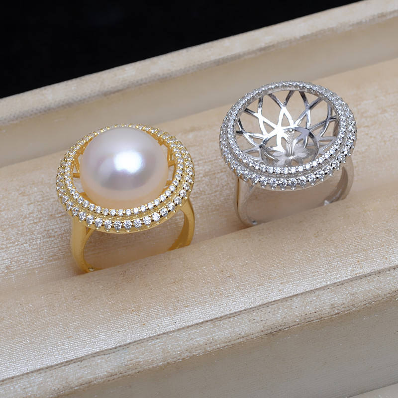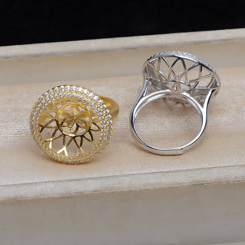 แหวนเงินแท้ S925 ลายดอกไม้บาน ปรับขนาดได้ พร้อมไข่มุก 15-16 มม. รุ่น JG5218 อุปกรณ์ทำเครื่องประดับ พร้อมฐาน