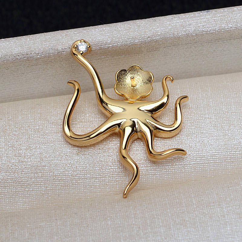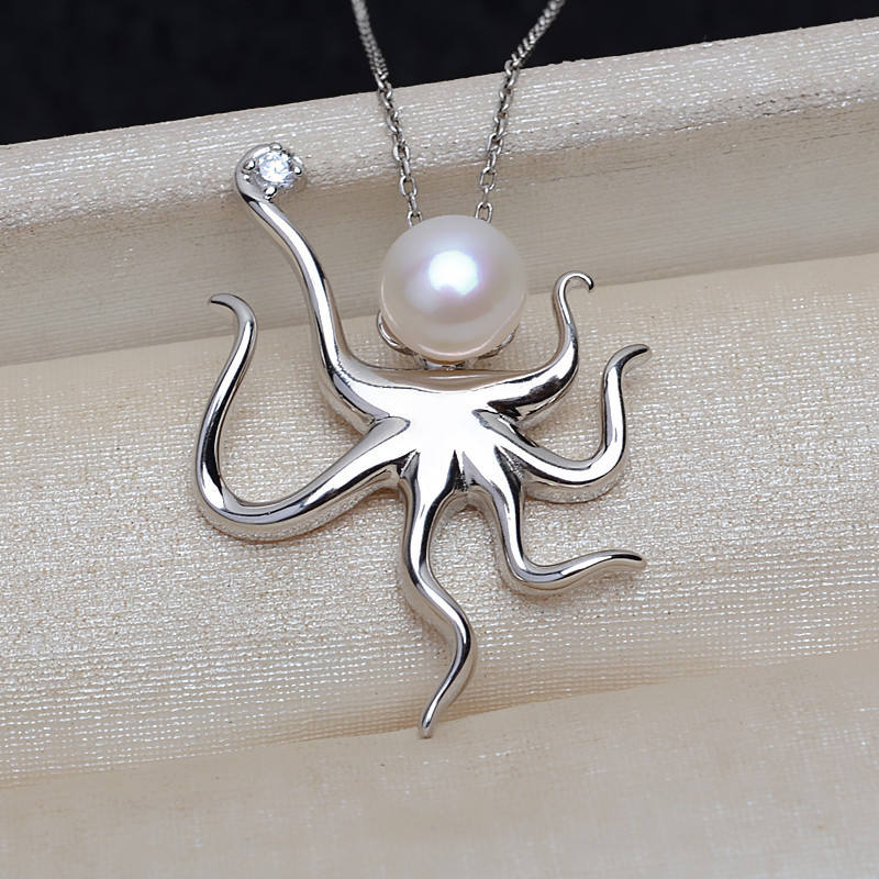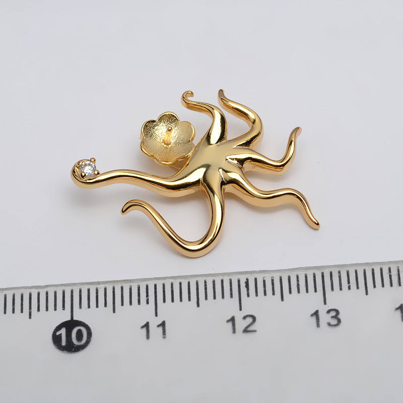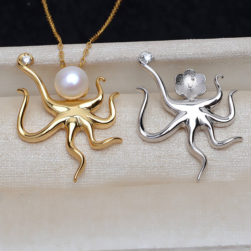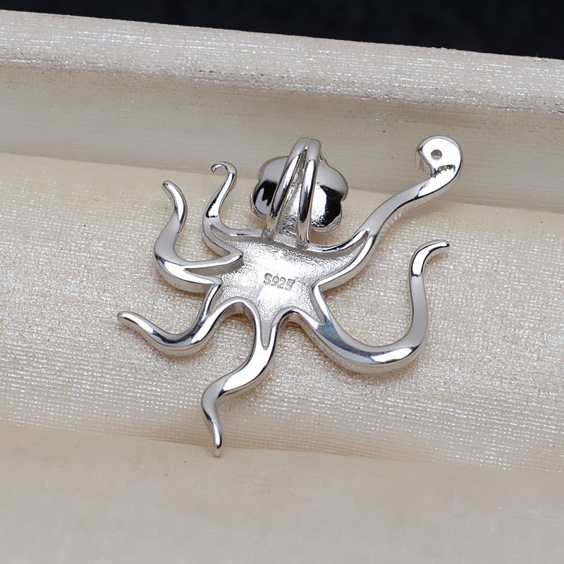 จี้เงินแท้ S925 พร้อมพู่ห้อยประดับมุก 8-10 เม็ด จี้รูปปลาหมึกสำหรับผู้หญิง อุปกรณ์ทำเครื่องประดับ DIY ตัวจี้เปล่า ผลิตภัณฑ์กึ่งสำเร็จรูป