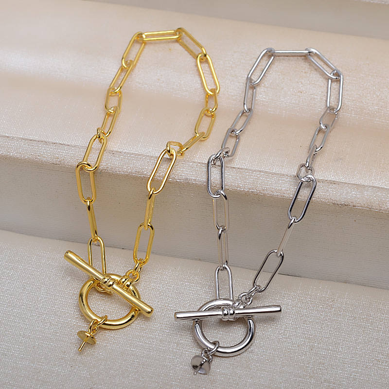 S925 Silver Thick Cross Chain Bracelet for Men and Women Baroque Hollow Accessory Pearl Jewelry with Cross Design