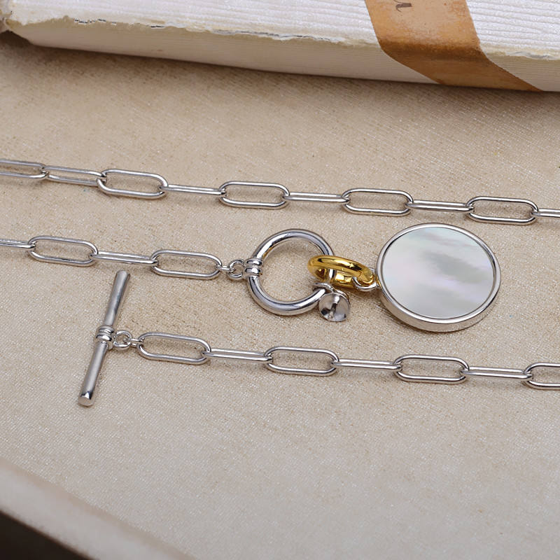 ชุดสร้อยคอเงินแท้ S925 ลายกากบาทหนา พร้อมจี้เปลือกหอยสไตล์บาโรก สำหรับผู้ชายและผู้หญิง พร้อมสร้อยคอ 4357 จี้แฟชั่นและเครื่องประดับ