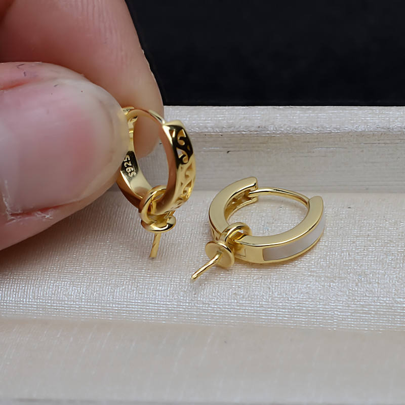 ต่างหูเงินแท้ S925 รูปตัวยู ผิวเรียบ พร้อมถาดเปล่าสำหรับใส่ไข่มุก 8-13 มม. อุปกรณ์ DIY สำหรับทำเครื่องประดับ 4365