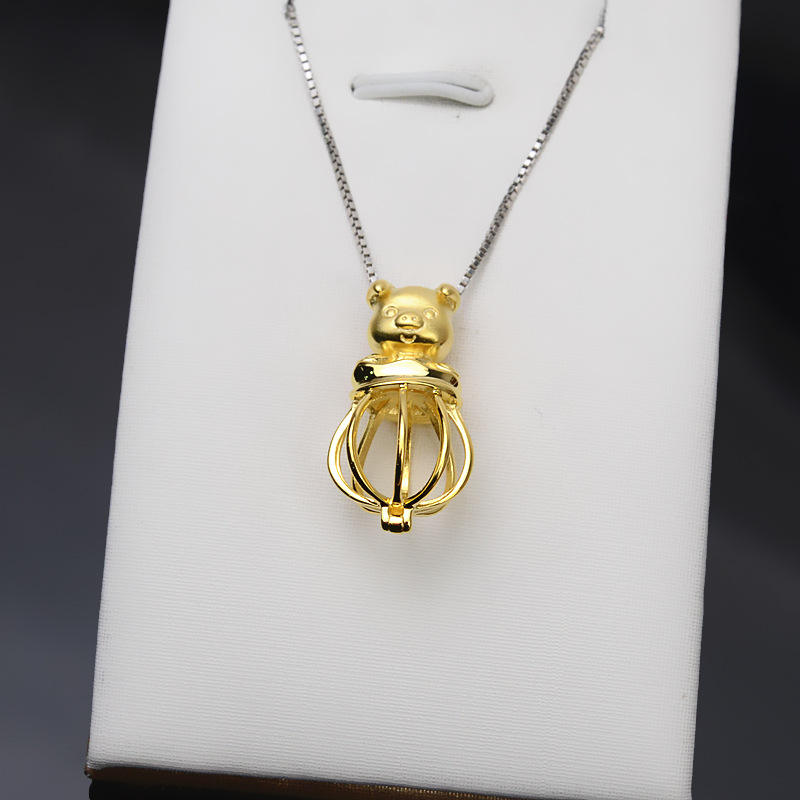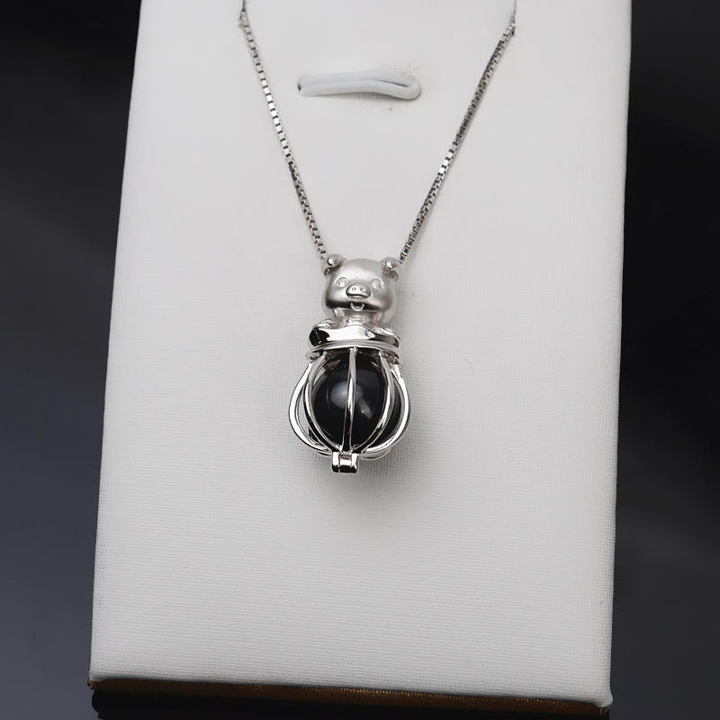 S925 Silver Zodiac Pig Pendant for Women Fashionable DIY Accessory 8-10mm Loose Pearls No Hole Empty Pearl Cage Holder Model 827