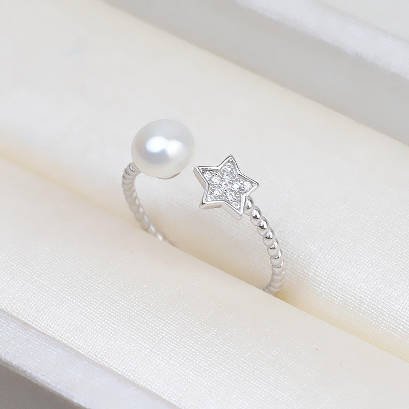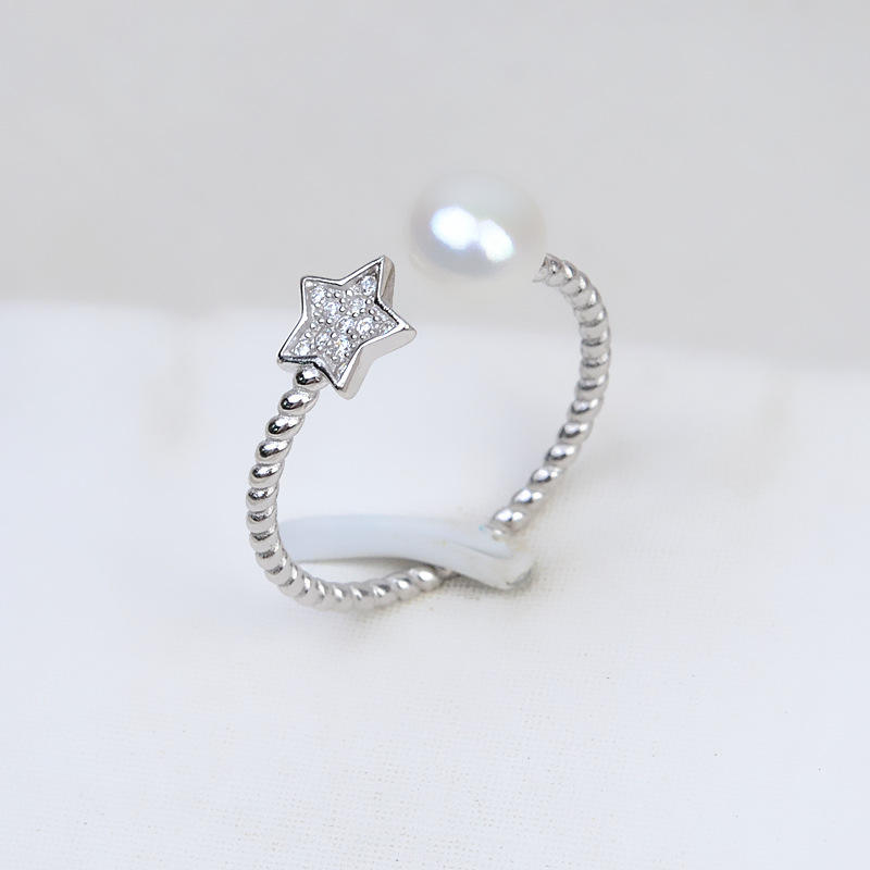แหวนเปิดเรียบง่าย S925 พร้อมฝาปิด 5-8 ชิ้น อุปกรณ์ทำเครื่องประดับมุก DIY รูปดาวห้าแฉก ลายเกลียว 83 ช่องใส่