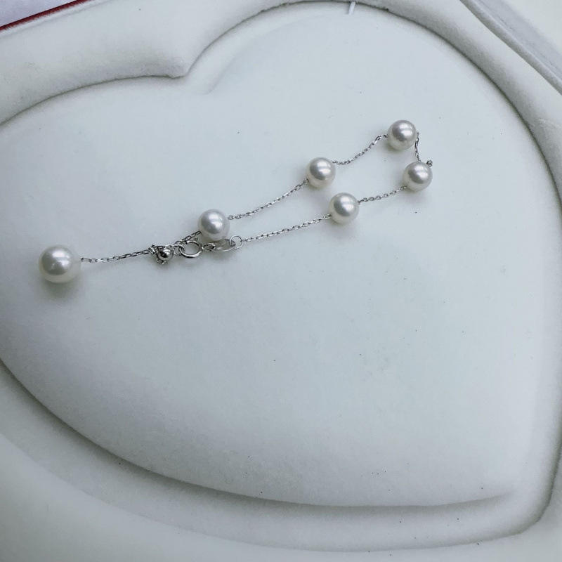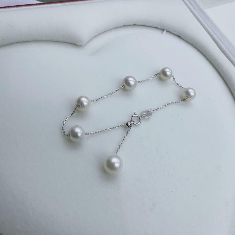 สร้อยข้อมือเงินแท้ S925 ขนาด 6.5-7 มม. ทรงกลม ประดับมุกน้ำจืดธรรมชาติ ดีไซน์สวยงาม ดุจดวงดาวบนท้องฟ้า