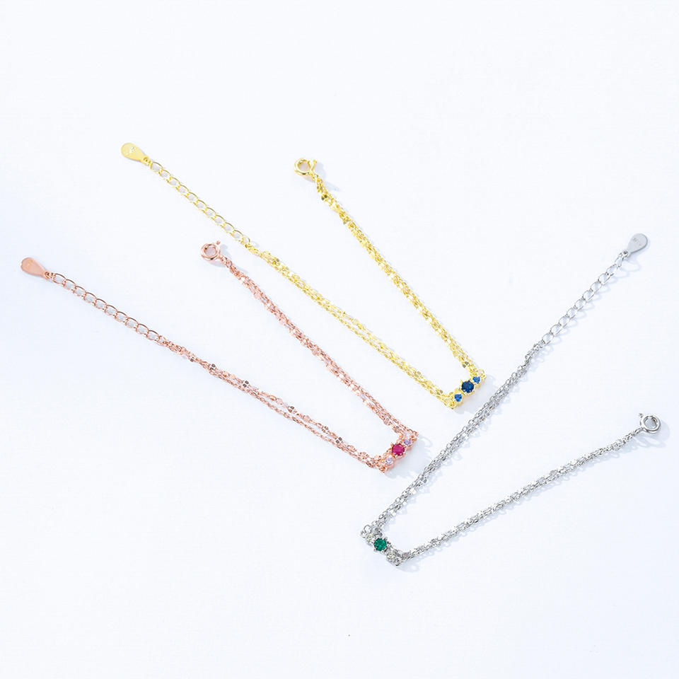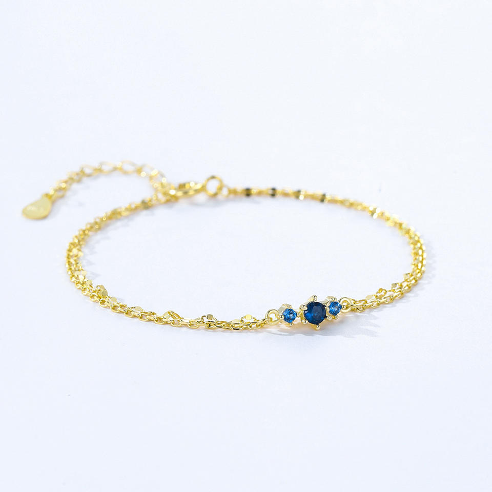 สร้อยข้อมือเงินแท้ S925 ประดับเพทายสีน้ำเงินทรงกลม พร้อมสายทอง สำหรับผู้หญิง แฟชั่นใส่ได้ทุกวัน รุ่นทองแดงปรับแต่งได้