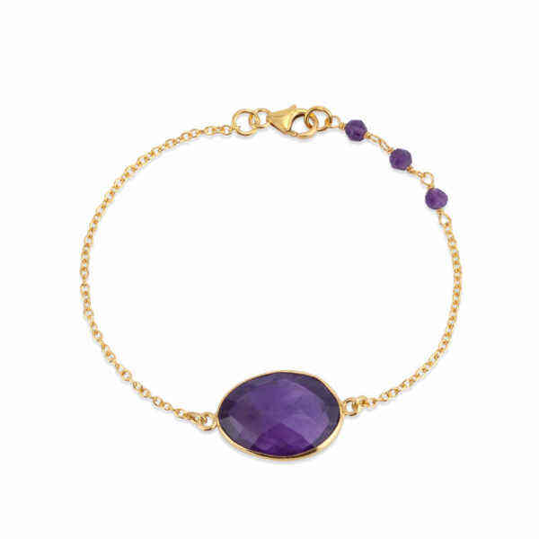 สร้อยข้อเท้า S925เงินสเตอร์ลิงประดับพลอยอเมทิสต์ธรรมชาติทรงเหลี่ยมเพชรพลอยชุบทองวินเทจสำหรับเป็นของขวัญในงานปาร์ตี้ขายส่ง