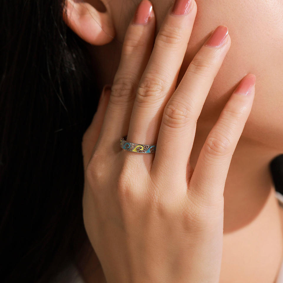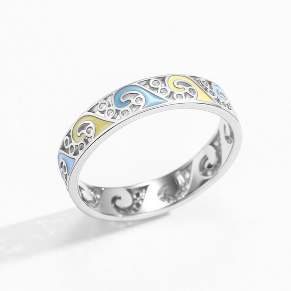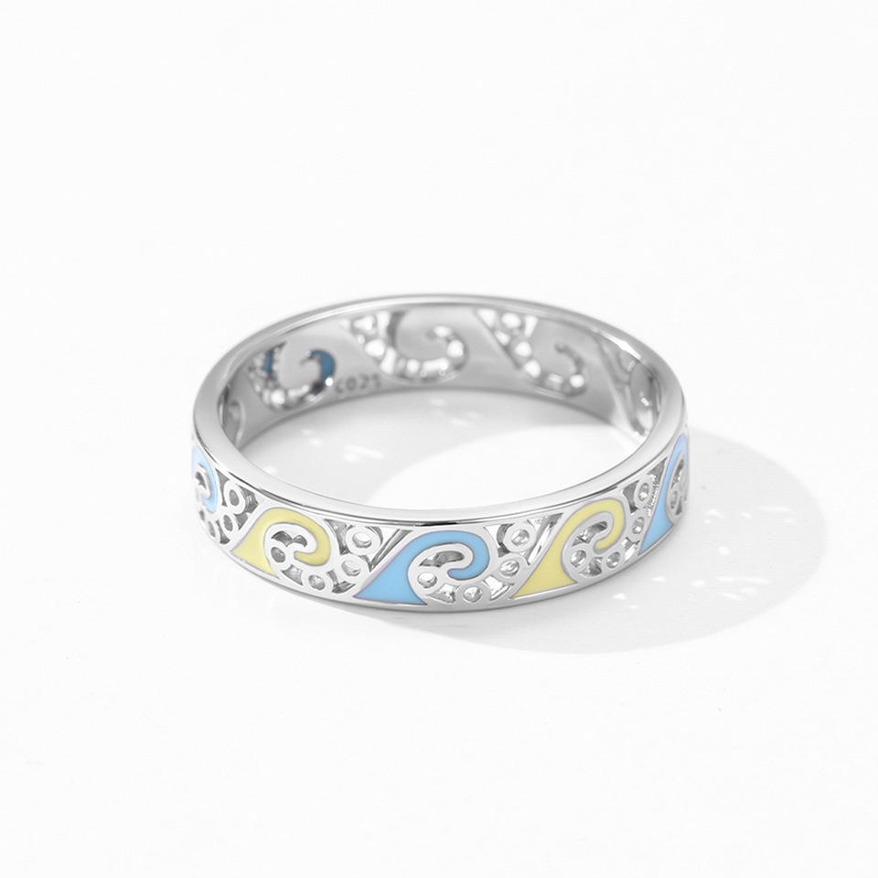 แหวนแต่งงานแฟชั่นรูปเมฆมงคลแบบคลาสสิกทำจากเงินแท้ S925 ประดับด้วยเรซิ่นเคลือบสี พร้อมชุบแพลตตินั่ม/ทองคำขาว