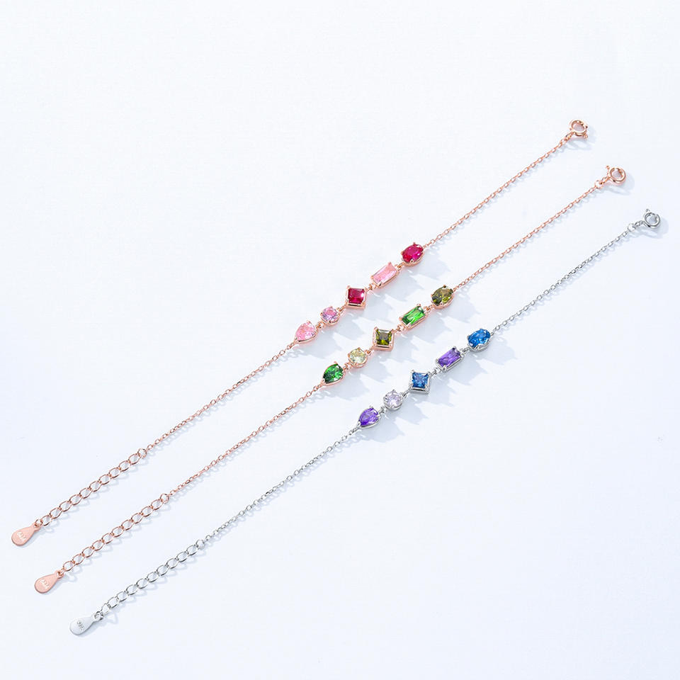 สร้อยข้อมือเงินแท้ S925 ประดับเพทายสีรุ้ง ดีไซน์สามสี สำหรับผู้หญิง ของขวัญวันครบรอบ/วันวาเลนไทน์ รุ่นทองแดงปรับแต่งได้