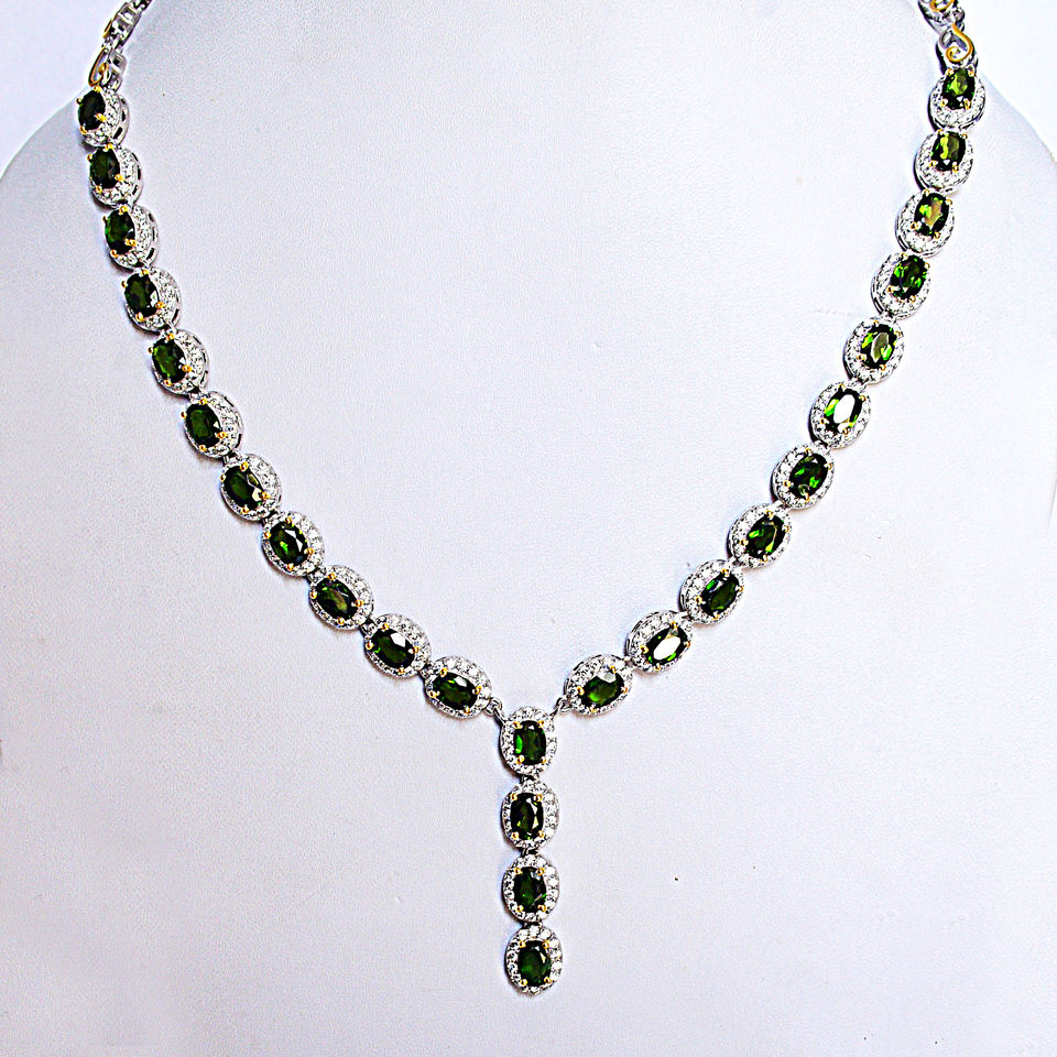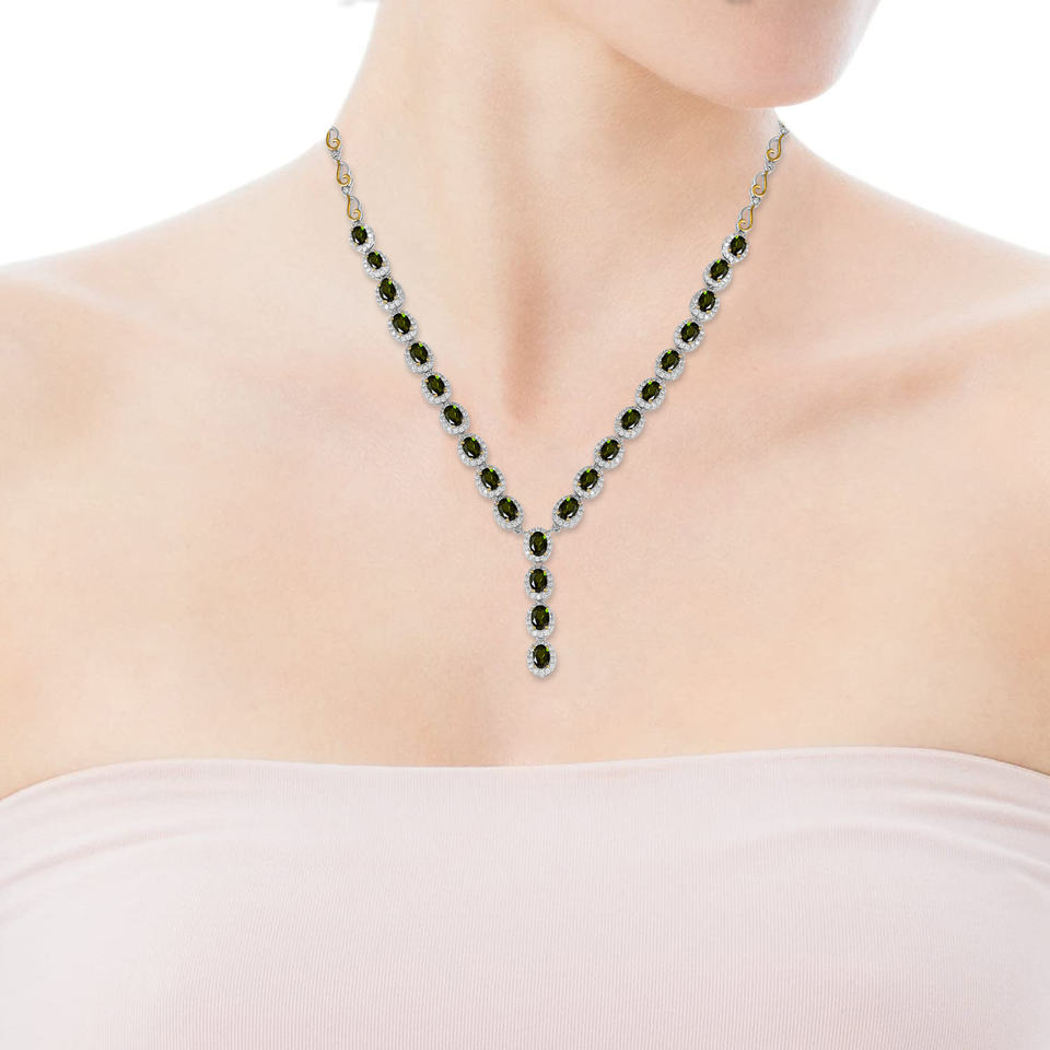 S925เงินสเตอร์ลิงลูกบาศก์เซอร์โคเนียน่ารักสร้อยคอ CZ Lariat ชุดสร้อยคอสีเขียวโครเมี่ยมออกแบบสร้อยคอเงินชุบ