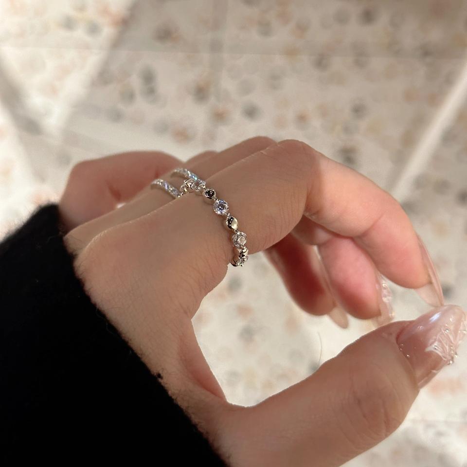 แหวนเพชรทรงกลมประดับดาวเงินแท้ S925 แหวนแฟชั่นระดับไฮเอนด์ออกแบบมาสำหรับผู้หญิง
