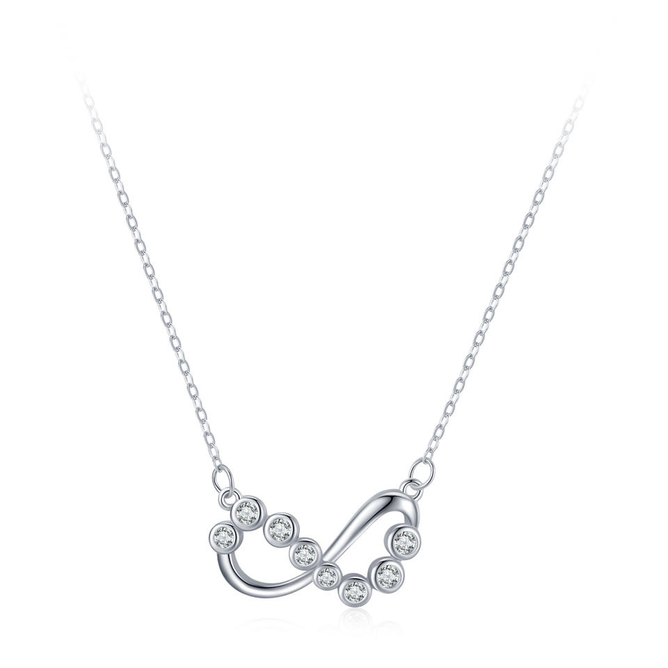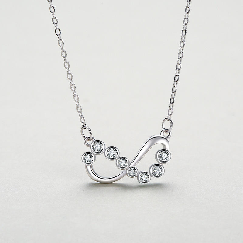 สร้อยคอจี้รูปอินฟินิตี้ประดับเพชรซิคอน ดีไซน์ทันสมัยและประณีต รุ่นทองแดงปรับแต่งได้ เงินแท้ S925 ขายส่ง ของขวัญสำหรับผู้หญิง