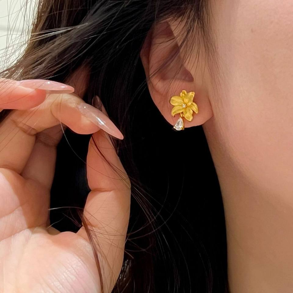 ต่างหูเงินแท้ S925 ดีไซน์หรูหรา รูปทรงหยดน้ำ ประดับดอกลิลลี่ ดีไซน์ดอกไม้จีนสุดพิเศษ